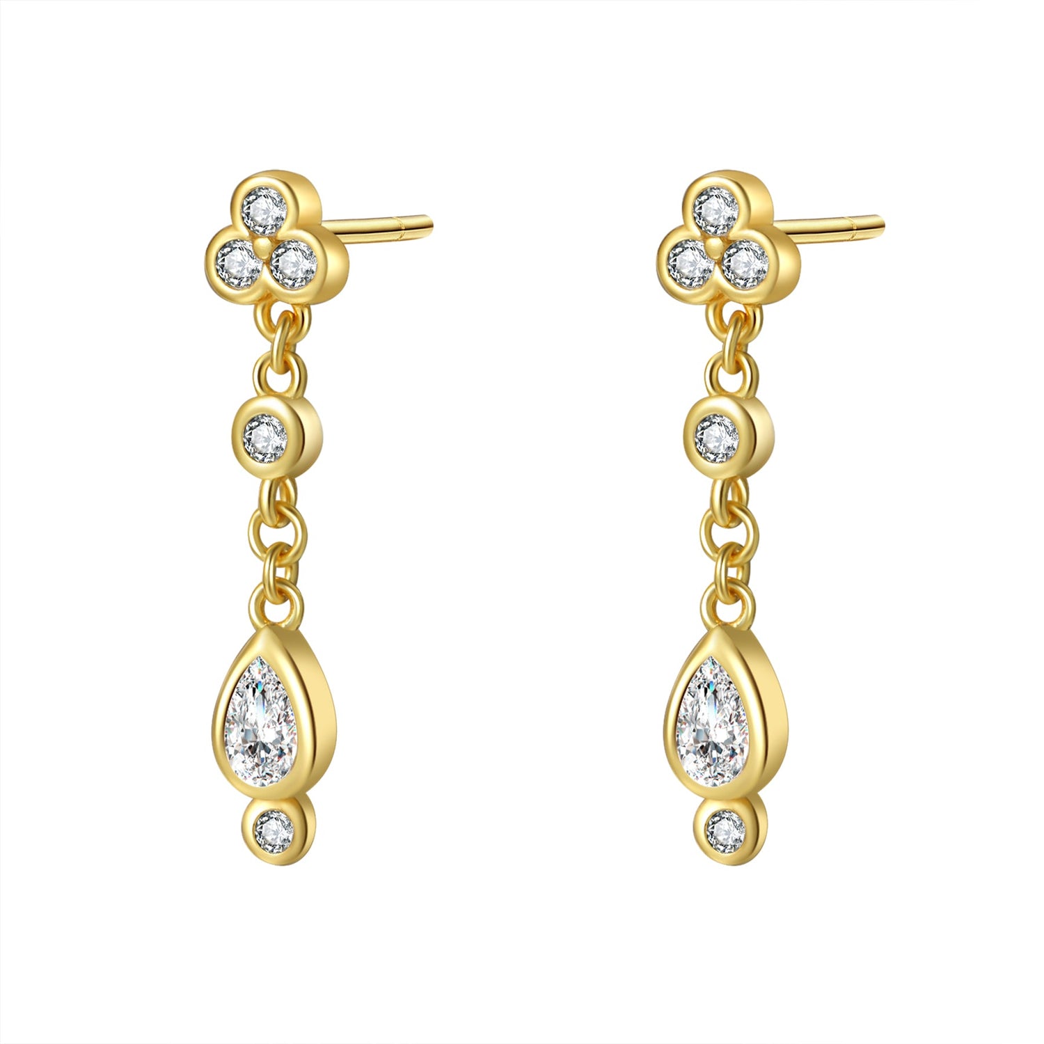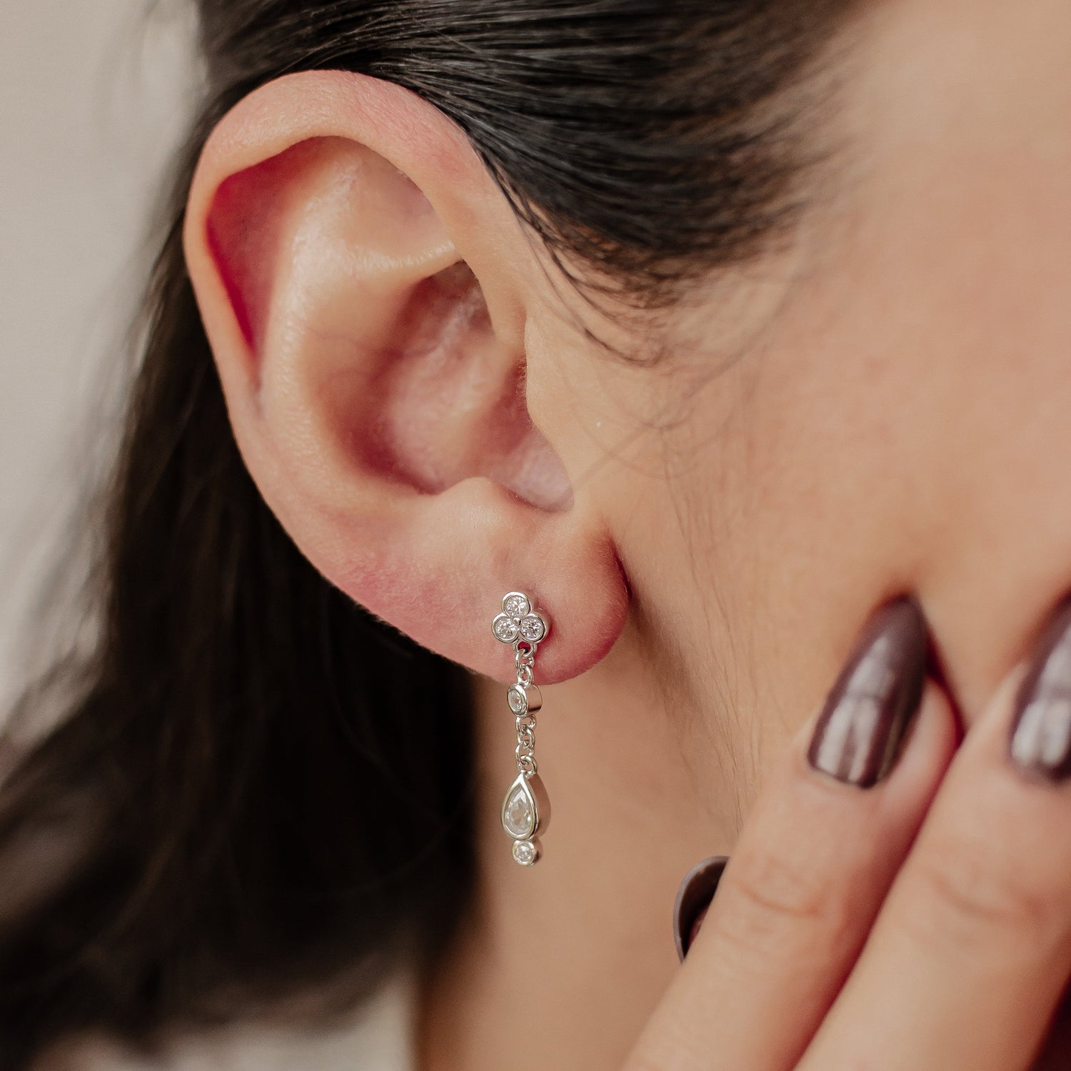Sterling silver with three zirconia gemstone drops. Available in gold plating and silver.