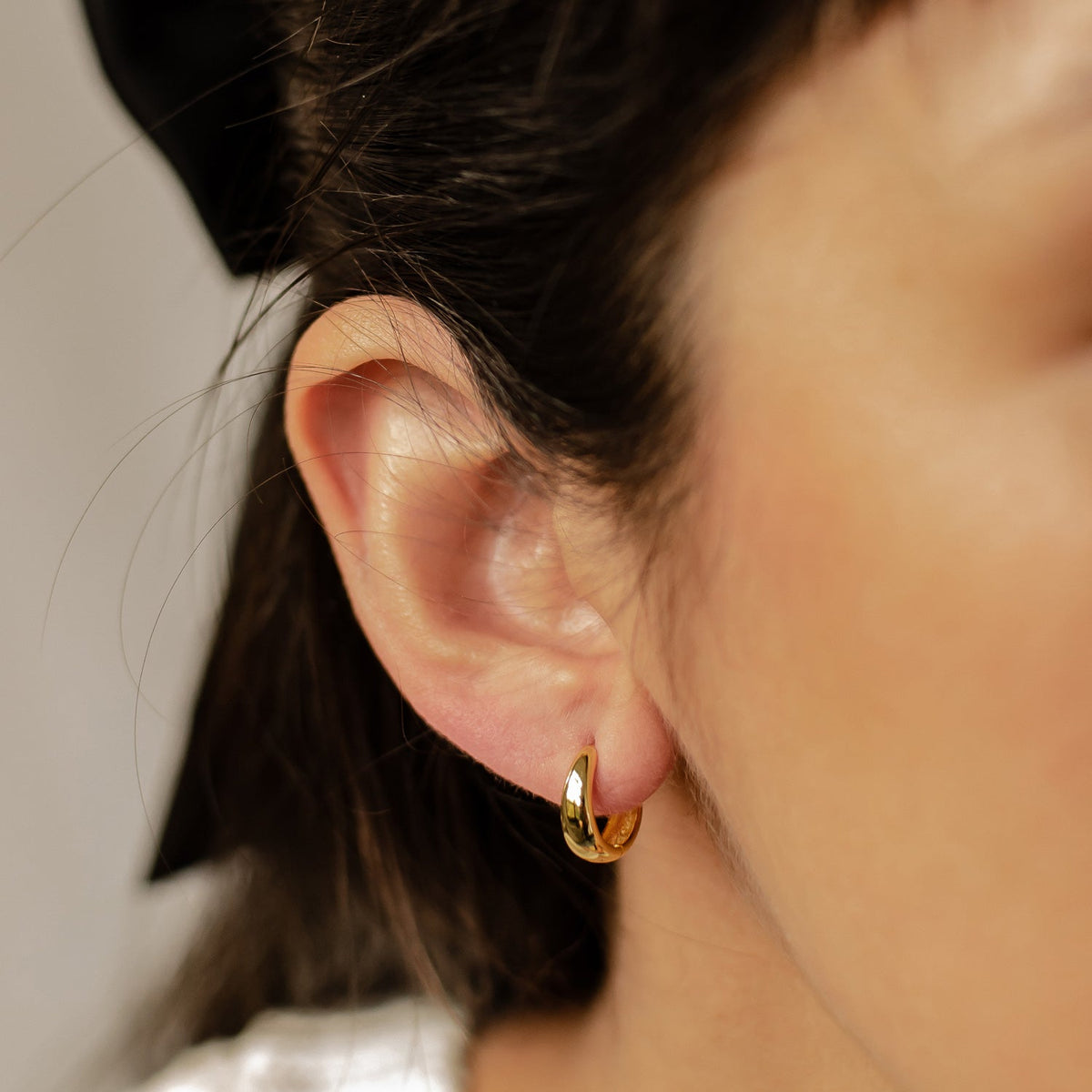 These Small Dome Hoop Earrings Sterling Silver by Hey Happiness offer elegant simplicity in a petite dome shape. Made from premium sterling silver and available in gold and silver finishes, these 8mm hoops add a subtle luxe touch to any ensemble.