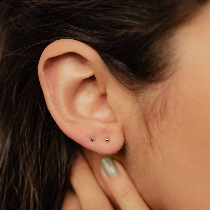 These Glint Stud Earrings by Hey Happiness add a playful, luminous touch to any ensemble with their distinctive ball design crafted in 14K gold. Whether worn as a single stud or as a pair, their polished, spherical shape offers a modern, minimalist sparkle perfect for layering or standalone wear. Embodying both elegance and fun, they capture the brand’s ethos of joyful self-expression.