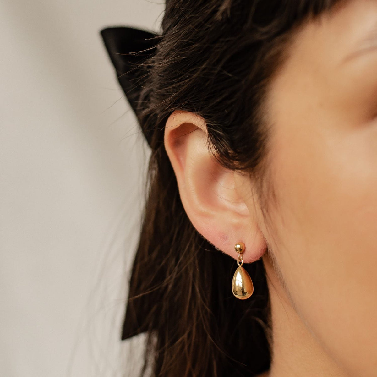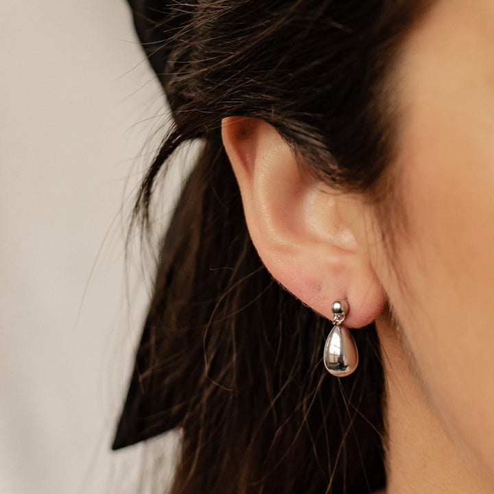 These Ball and Drop Earrings by Hey Happiness are a modern expression of minimalist elegance crafted from durable stainless steel. The stud design features a polished small ball with a hanging drop shape, creating a dynamic yet refined silhouette. Their versatile chicness makes them a perfect accessory to elevate both casual and formal ensembles, symbolizing strength and grace with a contemporary edge. An ideal piece for those who appreciate subtle statement jewelry that lasts.