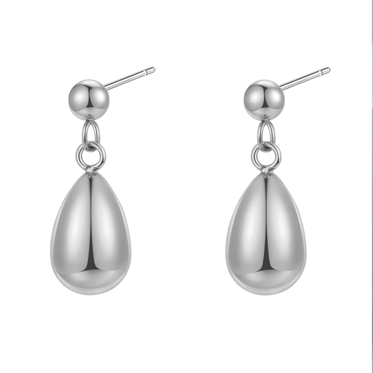 Made from stainless steel. Stud earrings with ball and drop shapes. Fastening type not specified. Available as a pair.