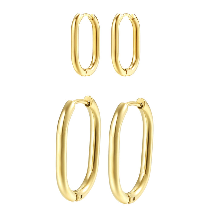 This Thin Oval Hoop Earring Set by Hey Happiness includes two pairs of sleek, thin oval hoops crafted from durable stainless steel. Designed for everyday wear or special occasions, their modern silhouette adds understated sophistication to any outfit. A versatile staple for layering or solo styling, these hoops elevate your earring game effortlessly.