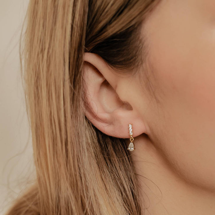 These Gemstone Bar Drop Stud Earrings by Hey Happiness are crafted from high-quality sterling silver, featuring a unique gemstone bar design with a delicate hanging drop. Elegant and sophisticated, they add luxury and style to any look. Available in gold and silver finishes.