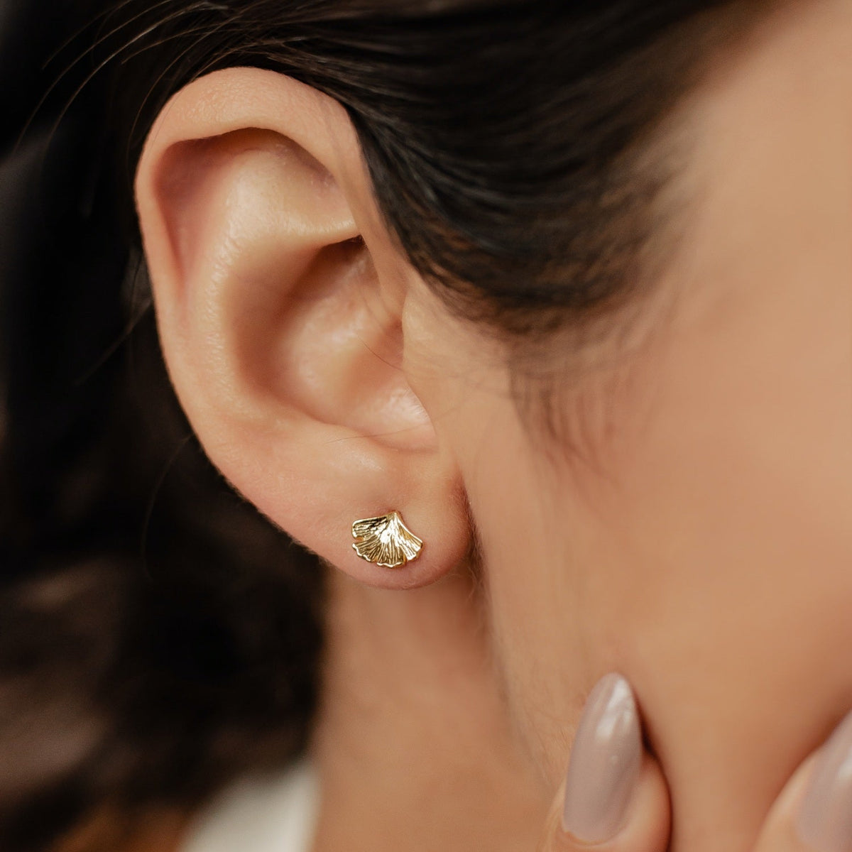 These Ginkgo Leaf Stud Earrings by Hey Happiness capture nature’s elegance with fan-shaped sterling silver pendants engraved with fine veins. The intricate leaf design offers subtle sophistication and organic beauty, suitable for daily wear or special occasions. Available in gold and silver finishes for versatile styling.