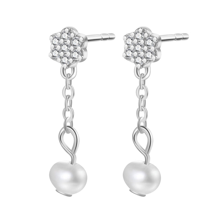 Flower and Pearl Drop Stud Earrings Sterling Silver