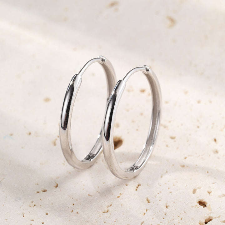 Crafted from sterling silver. Available with 18K gold plating or in silver. Mid-chunky hoop design.