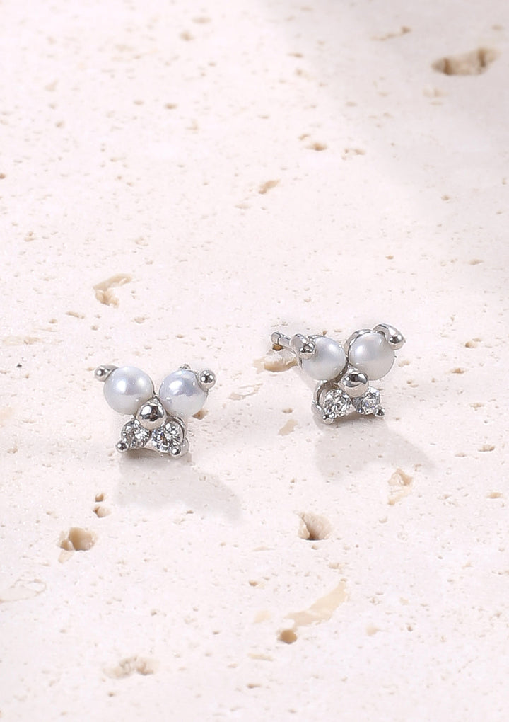 Made from sterling silver with natural pearls and zirconia stones. Thin posts with silver butterfly clasps.