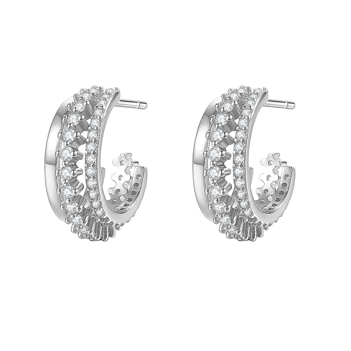 Sterling silver triple hoop earrings with multi-sized zirconia stones. Butterfly clasp.