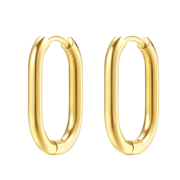 These Small Thin Oval Hoop Earrings by Hey Happiness are modern classics featuring a thin earpiece that threads comfortably through the ear and closes with a hinged clasp at the lower edge. Crafted from stainless steel, they are available in 18K gold-plated and silver finishes, offering sleek minimalism that pairs effortlessly with any outfit.
