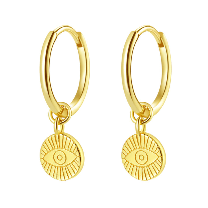 Evil Eye Charm Hoop Earrings Sterling Silver Gold