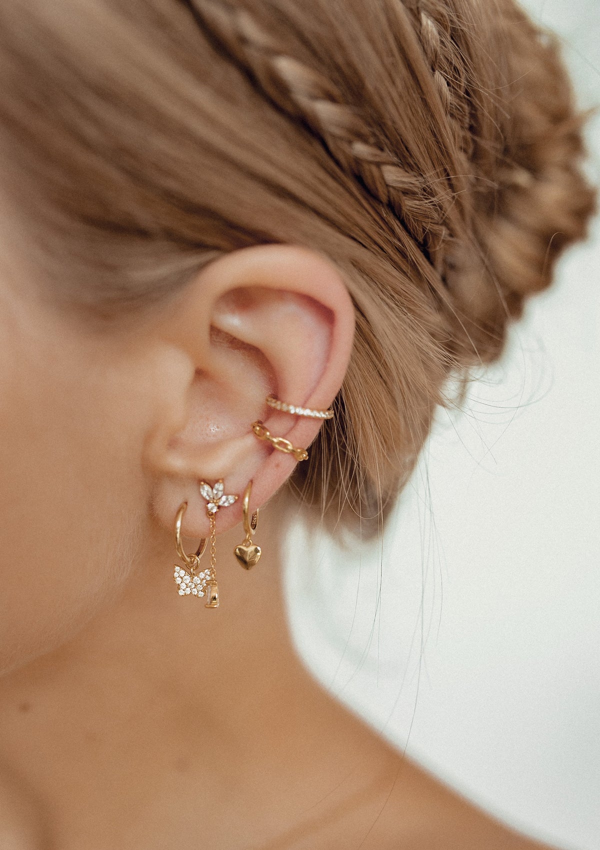 Made from 18 karat gold-plated sterling silver. Hoop earrings with detachable zirconia butterfly charms. Two purchase options: hoops with charms or charms only.
