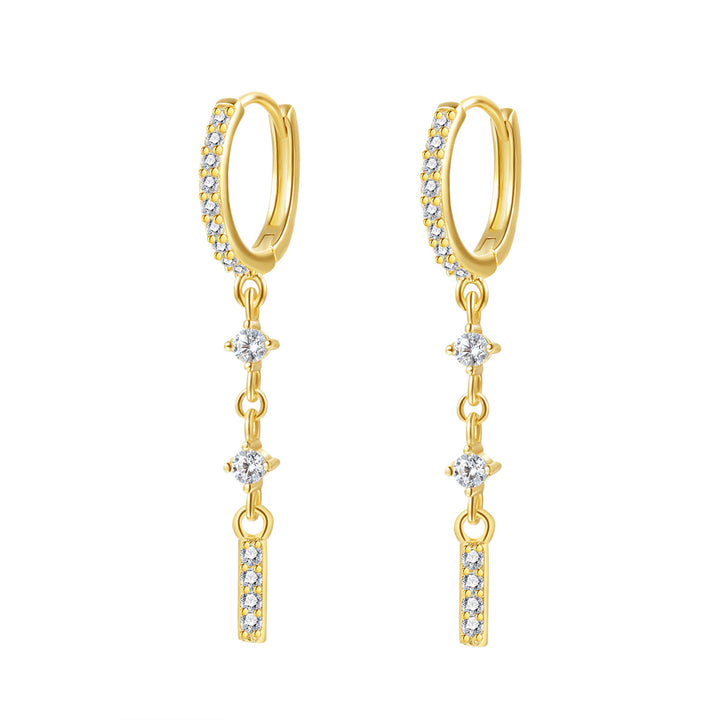 Dangle Bar Huggie Earrings Sterling Silver Gold