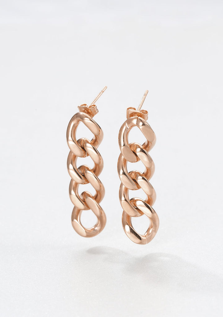 Chunky Curb Chain Dangle Earrings Rose Gold