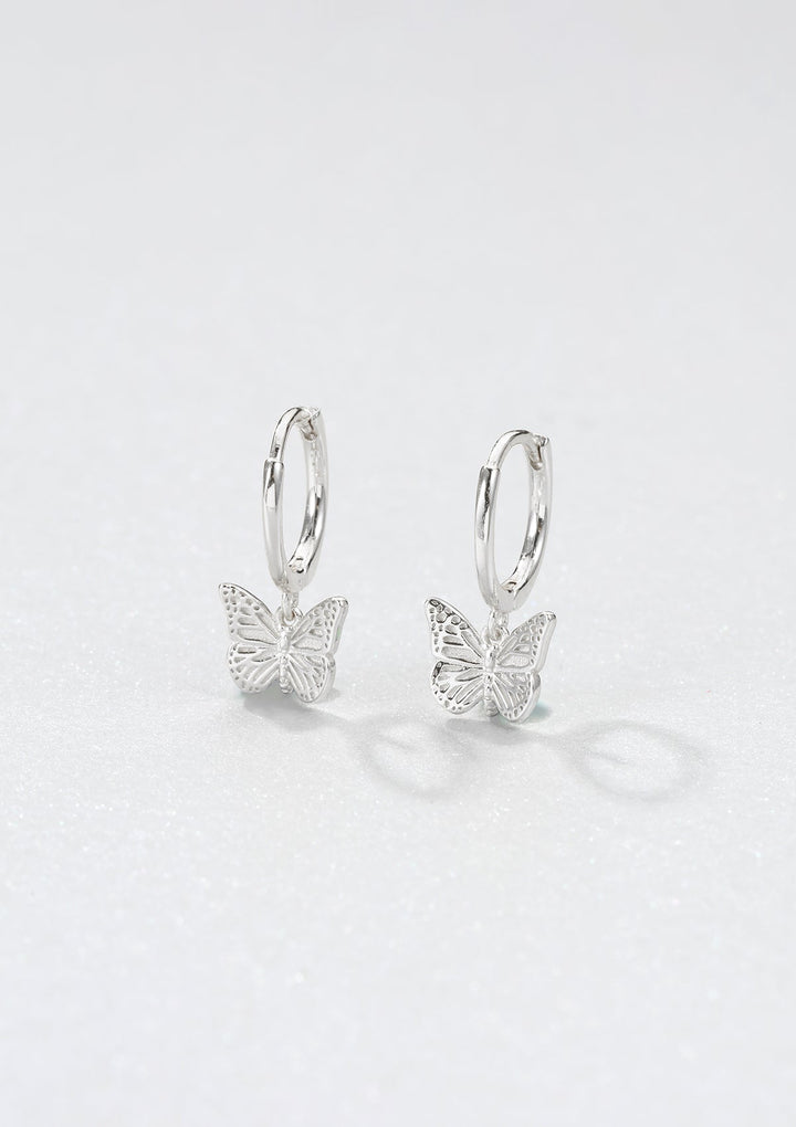 925 sterling silver with butterfly pendant. Huggie hoop design with thin earpiece.