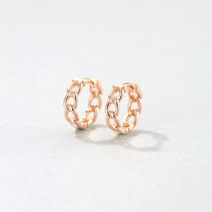 These Chunky Chain Huggie Earrings by Hey Happiness present a bold, urban-inspired aesthetic with a unique ‘chunky chain’ hoop design composed of eight linked chain segments. Made from sterling silver, they combine contemporary edge with ease of wear via a hinged clasp integrated into the chain links. This modern statement piece offers versatile styling options and is available in silver, 18K gold plated, and 18K rose gold plated finishes.