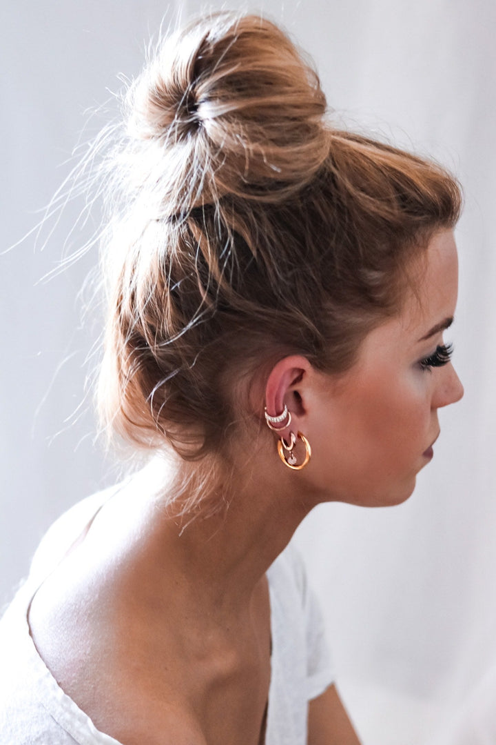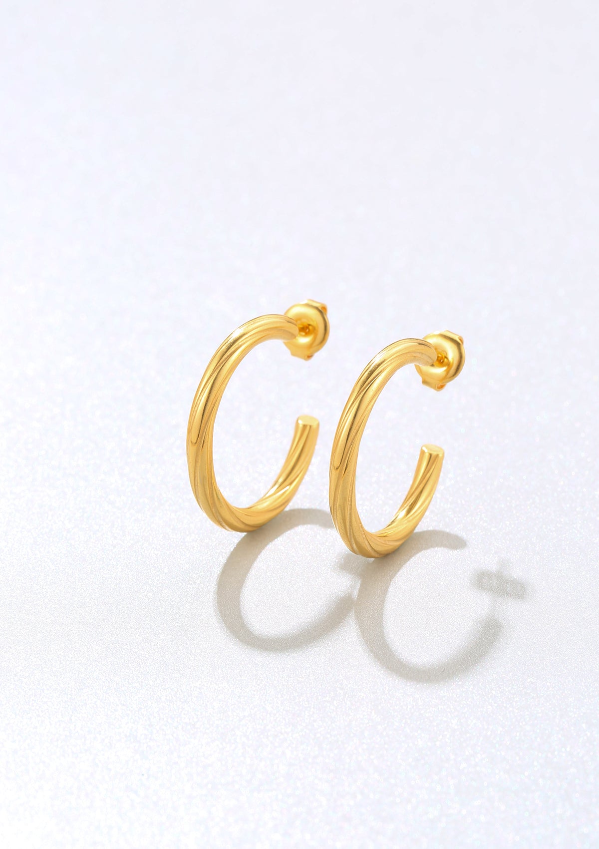 Made from 18K gold-plated stainless steel with a twisted hoop design. Golden butterfly clasp fastening.