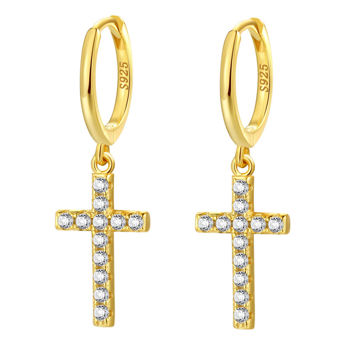 Cross Huggie Earrings Sterling Silver Gold