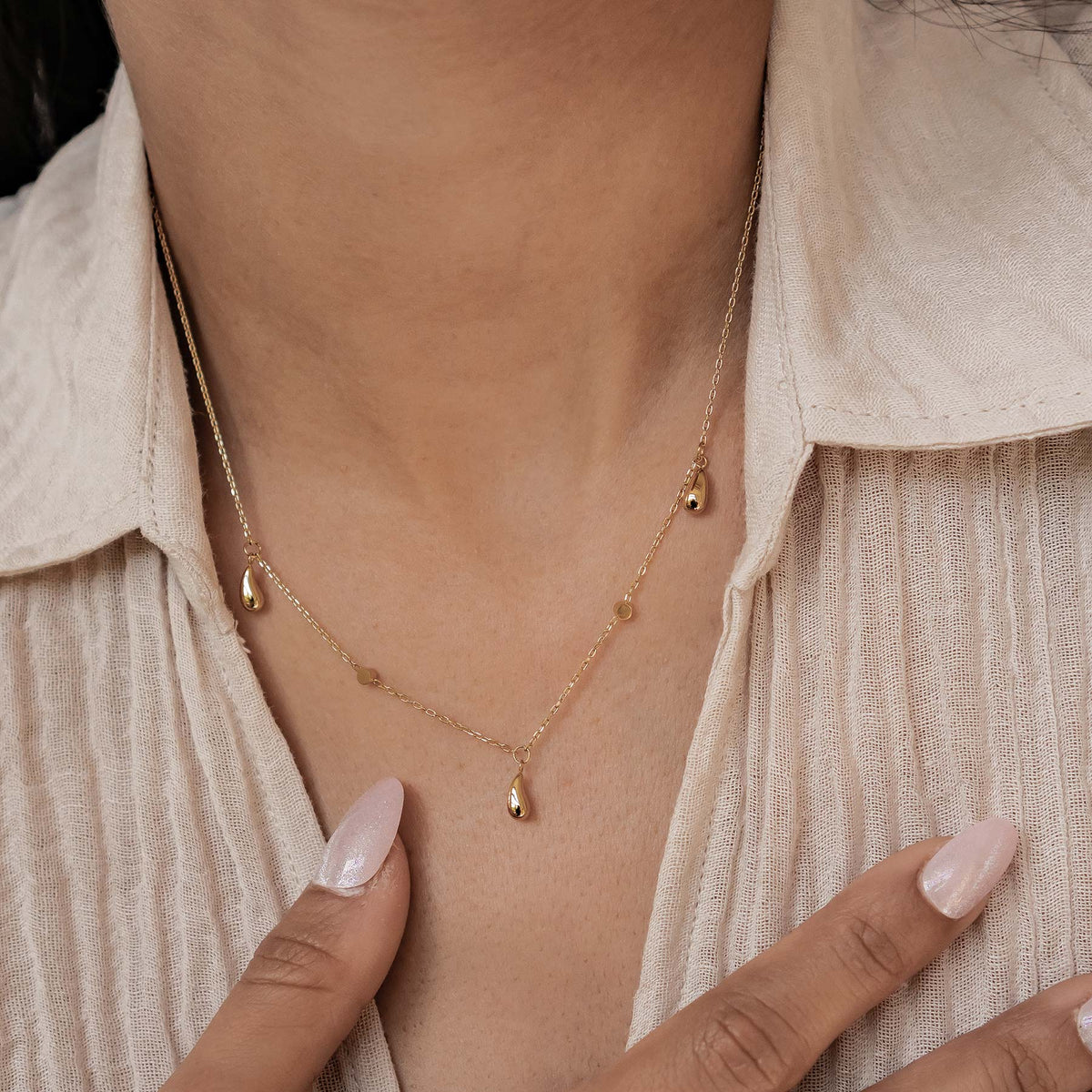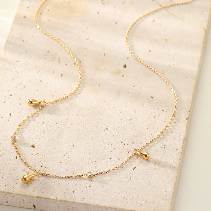 This Raindrop & Sparkle Chain Necklace Waterproof by Hey Happiness features delicate droplet charms paired with subtle sparkle accents that catch the light beautifully. Its playful yet refined design is perfect for layering or solo wear, offering a dreamy everyday elegance. Available in gold, rose gold, and silver finishes.