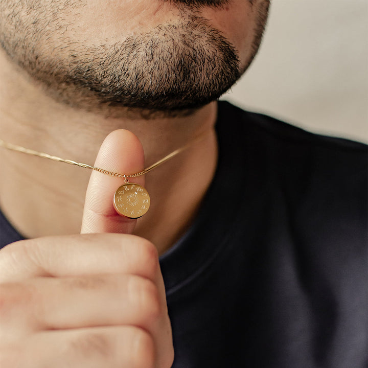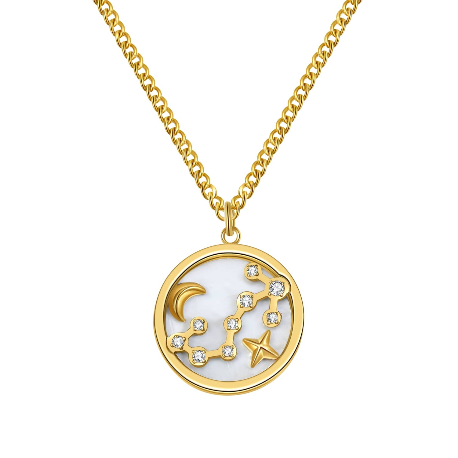 This Scorpio Star Constellation Necklace by Hey Happiness captures the fierce and focused spirit of Scorpio. One side of the round pendant delicately displays a tiny star, moon, and nine zirconia stones arranged as the Scorpio star constellation. The reverse side features all twelve zodiac symbols circling a sun, with a zirconia marking Scorpio’s position. Attached to your favorite chain via a metal bail, this necklace is a meaningful emblem of ambition, honesty, and unwavering conviction. Available in multiple finishes to suit your style.
