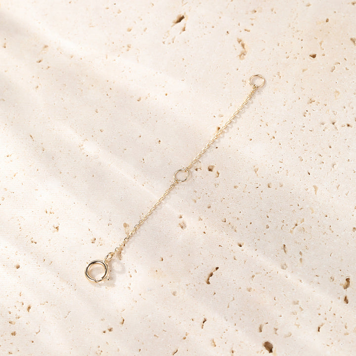 Made from 9K or 14K solid gold; silver version is rhodium-plated. Designed as a chain extension for necklaces. Durable, scratch-resistant, and tarnish-resistant finish.