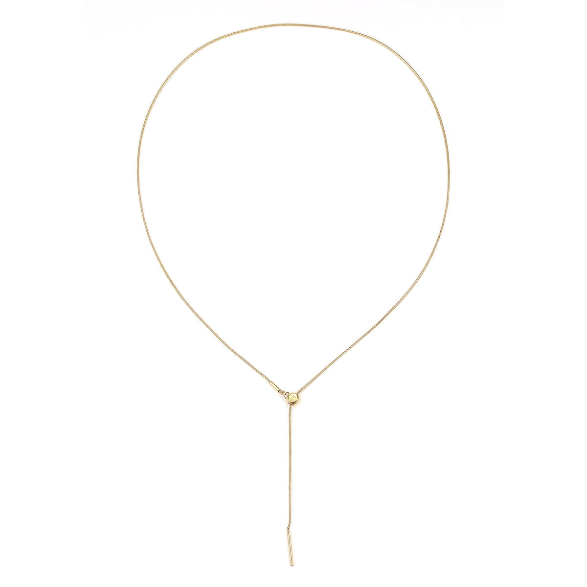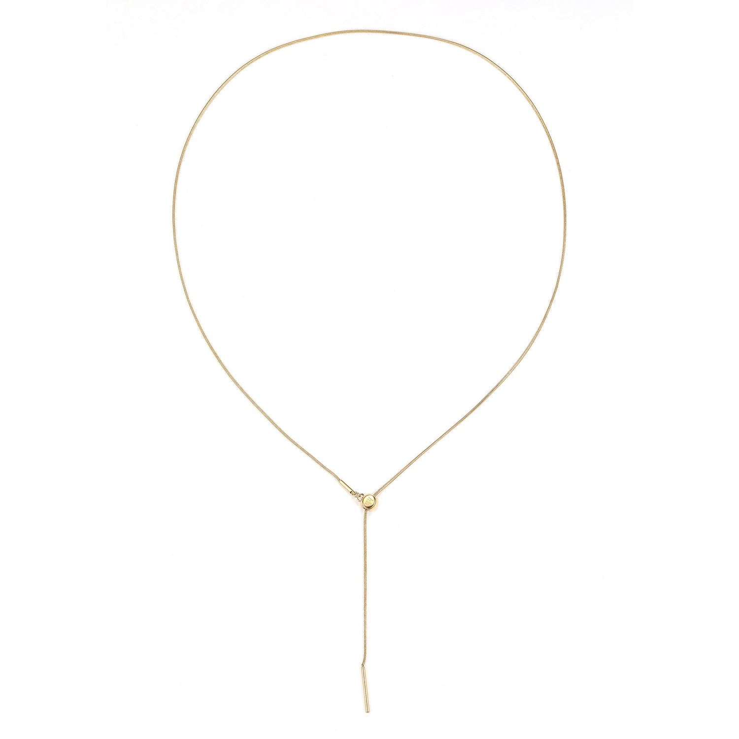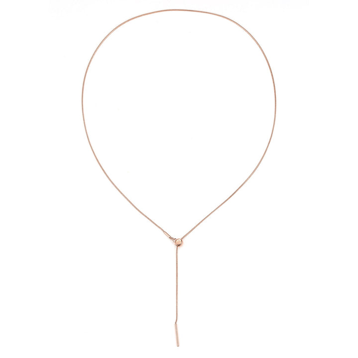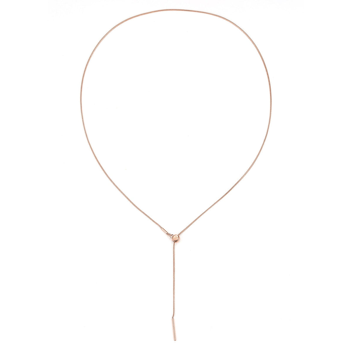 Made from stainless steel. Snake chain design with sliding clasp and matching metallic hardware. Available in 18K gold plated, 18K rose gold plated, and silver finishes.