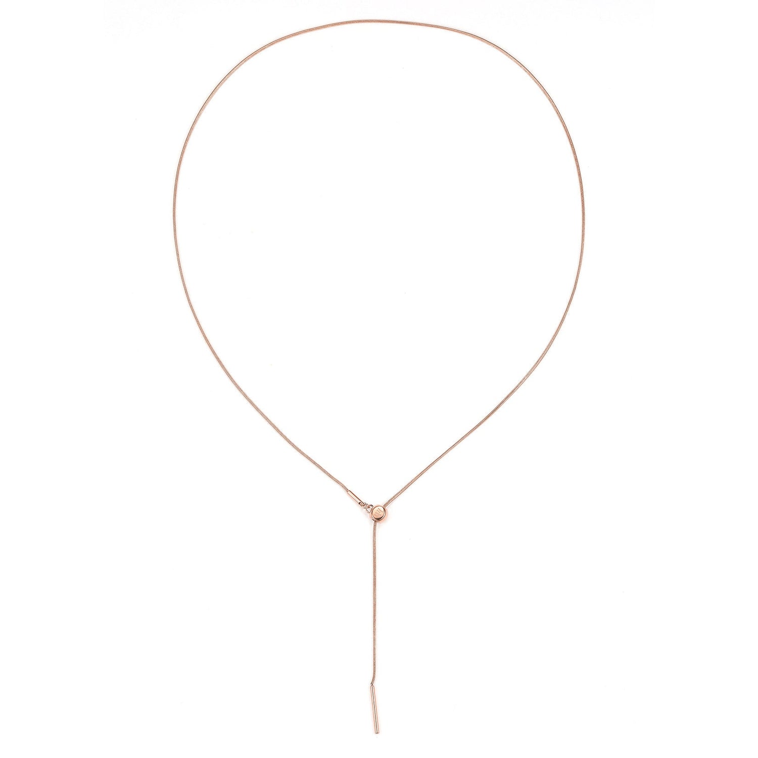 This Unisex Rolled Snake Chain Necklace by Hey Happiness presents a sleek, snake-style chain made from stainless steel with smooth, flowing lines. It features a unique sliding clasp for easy length adjustment without fiddling with jump rings, finished with matching metallic hardware at the ends. Slightly larger in size, this necklace suits both men and women perfectly and pairs beautifully with one or multiple pendants for personalized styling.