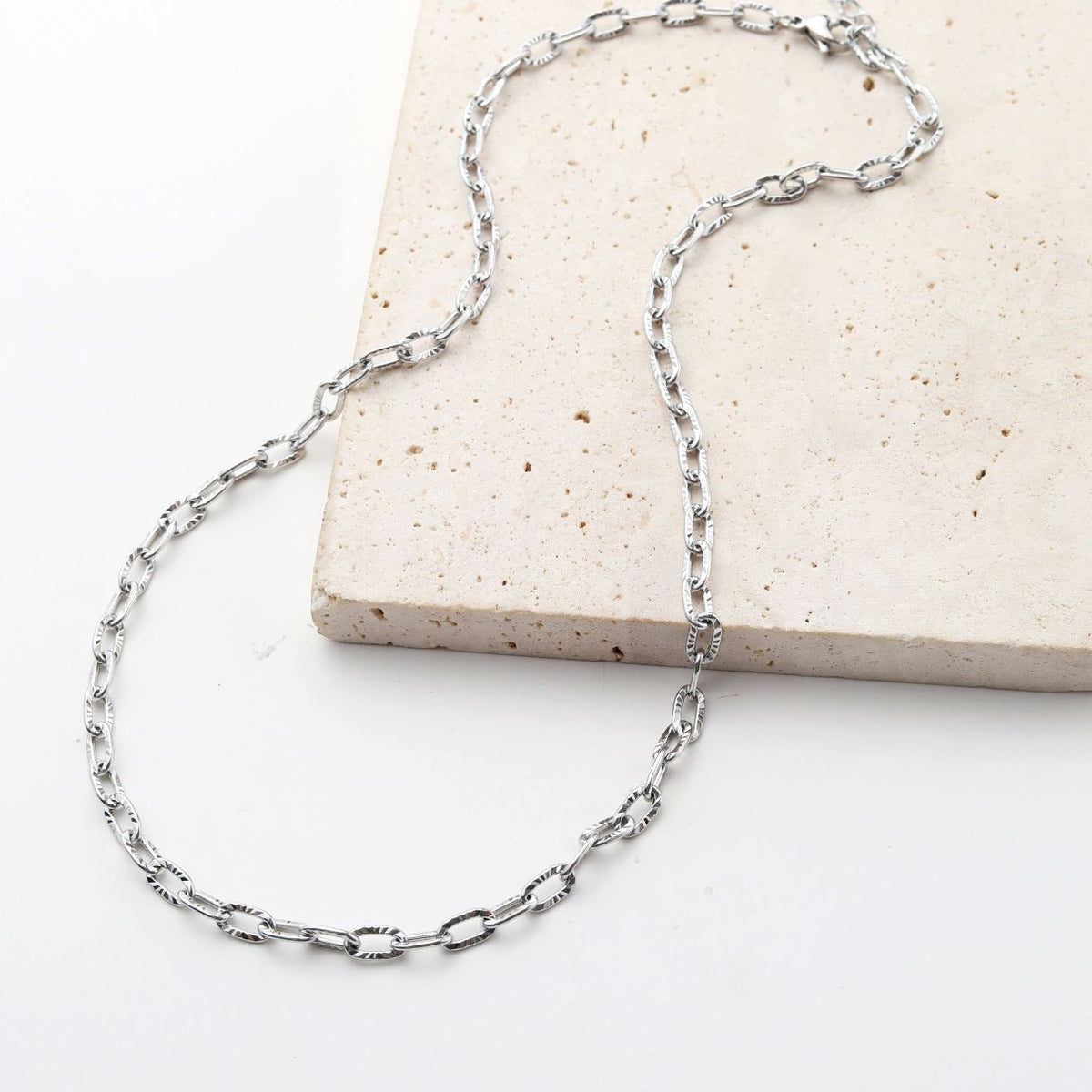 Textured Link Chain Necklace Silver