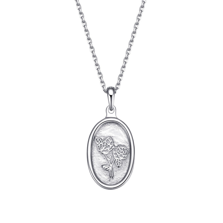 Oval Rose Pendant Necklace Sterling Silver