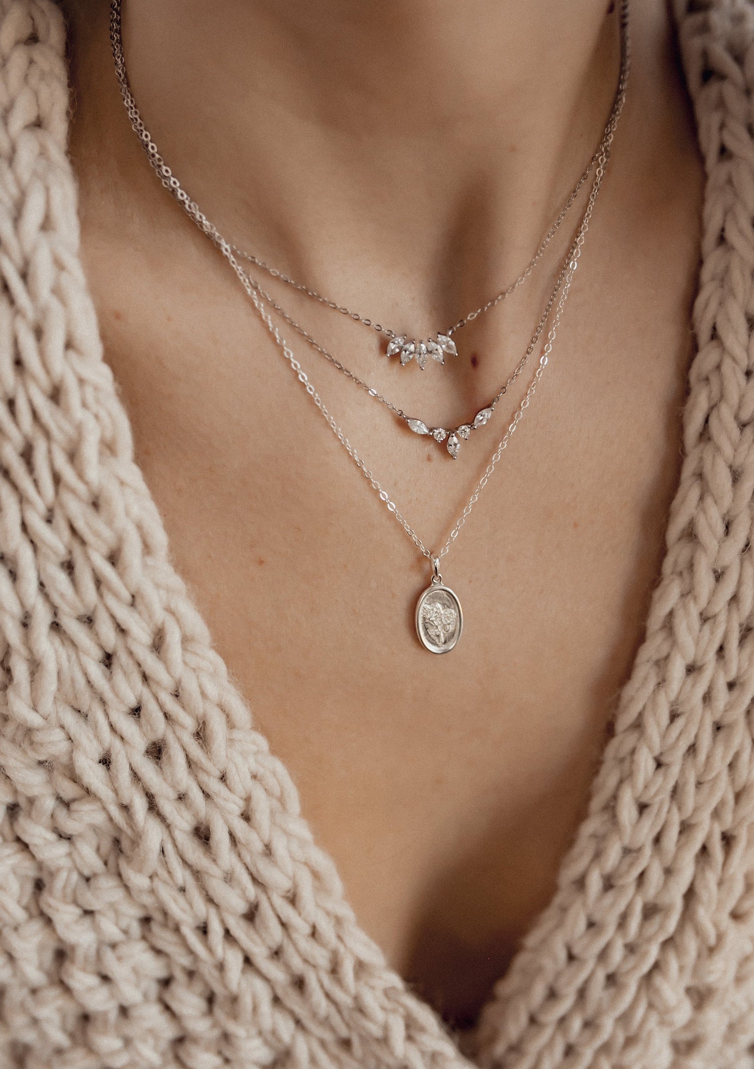 This Oval Rose Pendant Necklace by Hey Happiness combines a fine sterling silver cable chain with a solid oval pendant engraved with two roses, their stems, and leaves. The chain features small oval links, fastens with a round spring clasp, and includes an extension chain for adjustable length. A modern, elegant, and versatile necklace suitable for day-to-evening wear.