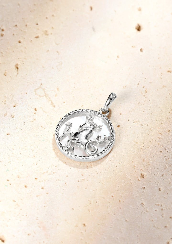 This Capricorn Zodiac Pendant Necklace by Hey Happiness is designed for the ambitious Capricorn, featuring a removable circular pendant depicting a half-goat, half-horse figure surrounded by four tiny zirconia stones. Available with or without its matching adjustable chain, it carries the empowering message: “I am the master of self-control, never give up, and have the ability to achieve all of my dreams.”