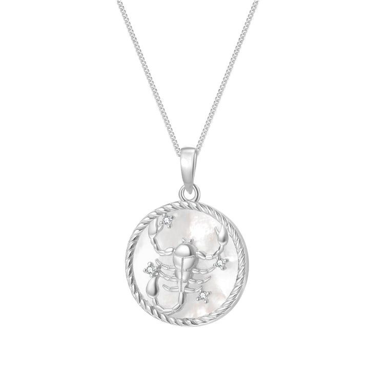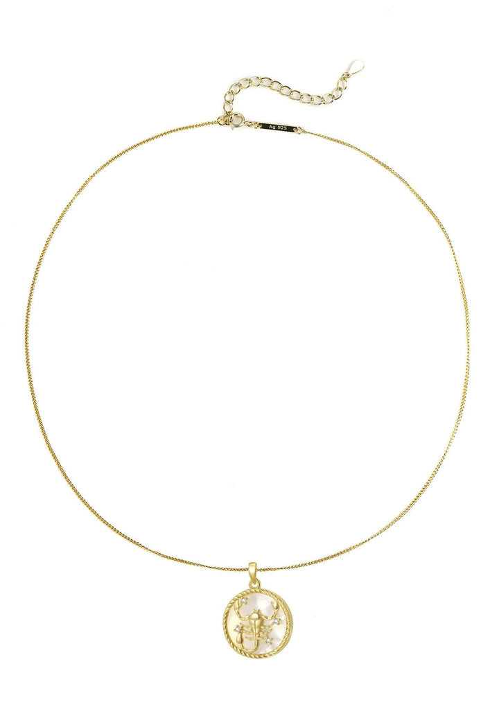 This Scorpio Zodiac Pendant Necklace by Hey Happiness is designed for the passionate and brave Scorpio, featuring a round removable pendant with a powerful, symmetrical scorpion at its center. Four tiny zirconia stones embellish the design, symbolizing resilience and determination. Hanging from a classic adjustable chain with spring clasp and short extension, this necklace serves as a wearable reminder: “I am the source of my own strength. I am resourceful and will blaze my own trail.”