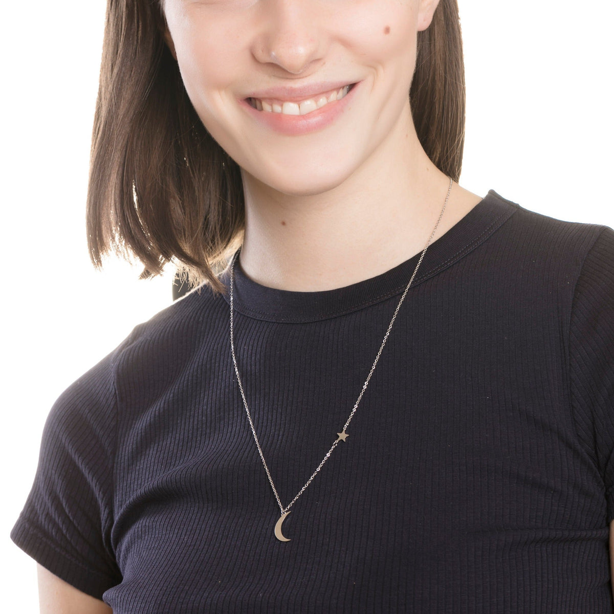 Star and Moon Pendant Necklace Silver