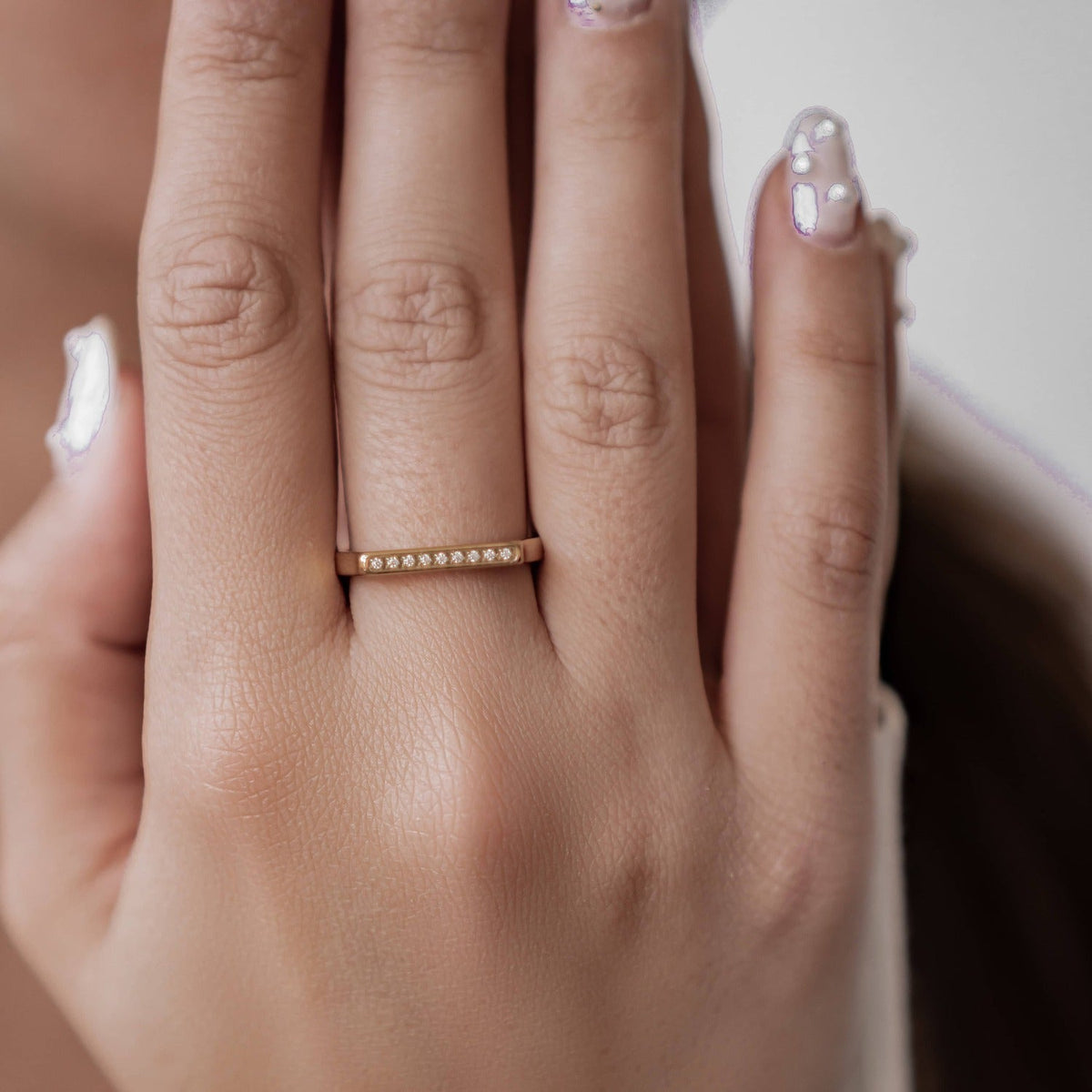 This Sleek Gemstone Arc Signet Ring by Hey Happiness offers a modern and minimalist aesthetic with a delicate arc of gemstones set into a stainless steel band. Its refined design is perfect for those who appreciate subtle sparkle paired with contemporary elegance. Available in gold, rose gold, and silver, the ring fits comfortably in various sizes, making it a versatile and stylish choice.