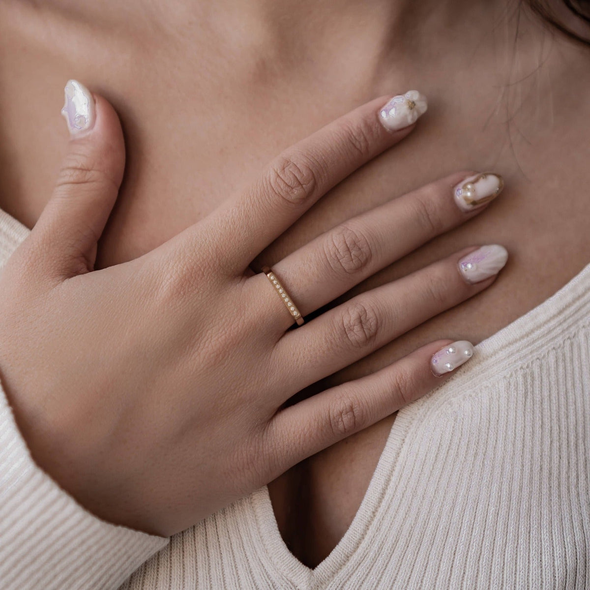 Made from stainless steel, available in gold, rose gold, and silver. Featuring a gemstone arc. Ring diameter approx. 16.5 mm (size 52). Available in multiple sizes.