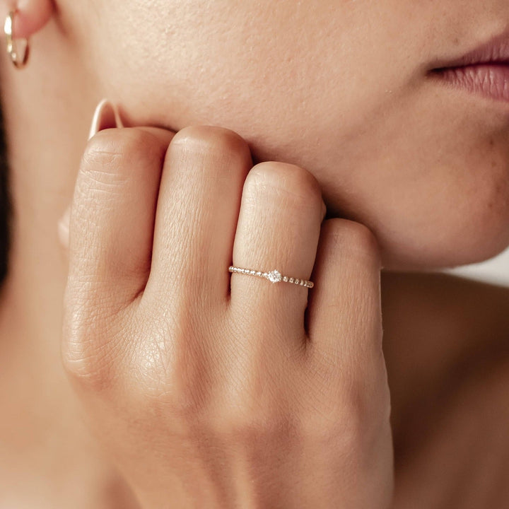 This Endless Love Diamond Ring by Hey Happiness is a symbol of eternal commitment, designed for those seeking an elegant wedding or special occasion ring. Made from solid 14K gold, this ring exudes timeless luxury and refinement. Its exquisite design embodies the meaning of endless love, making it a cherished piece for celebrating significant life moments.