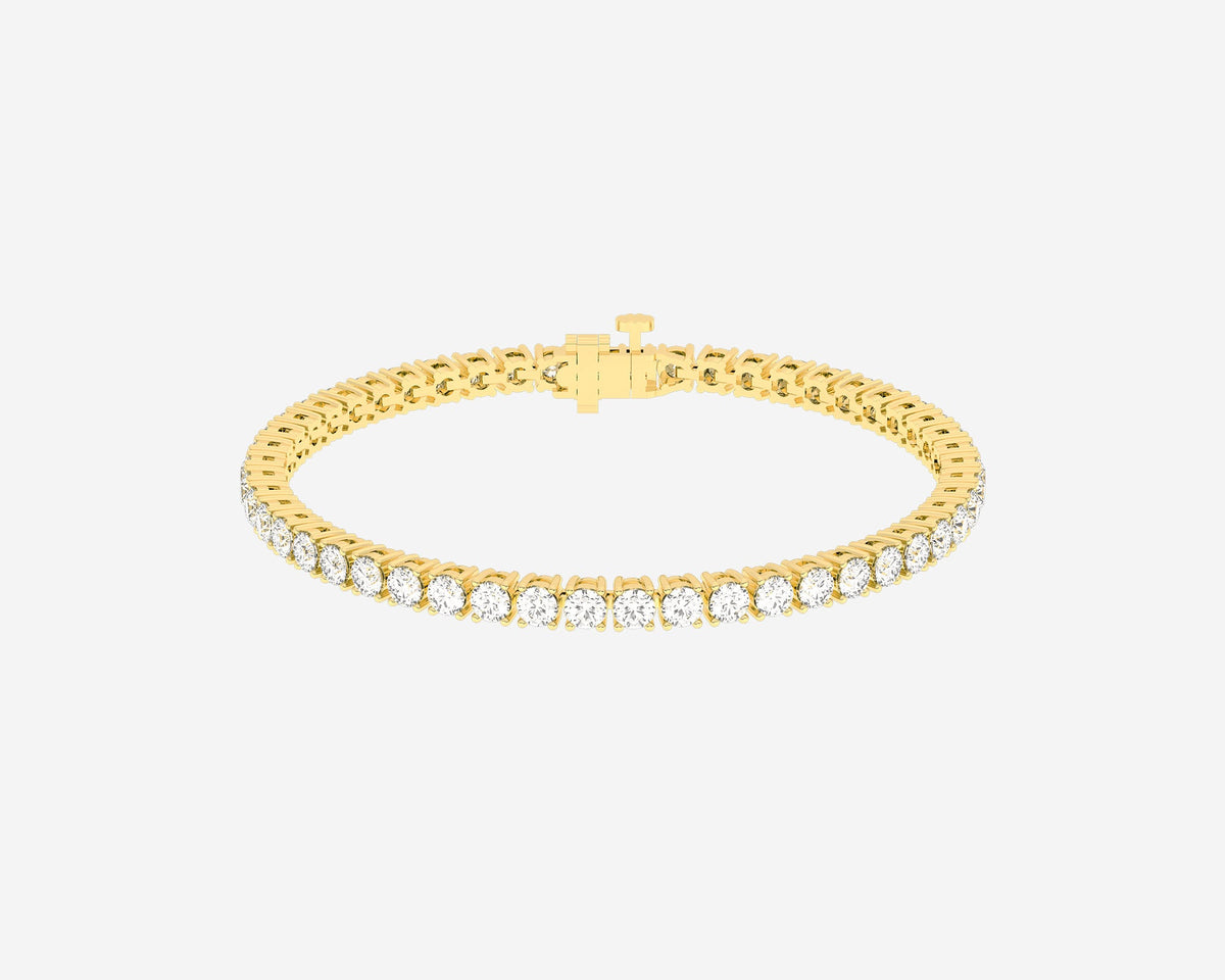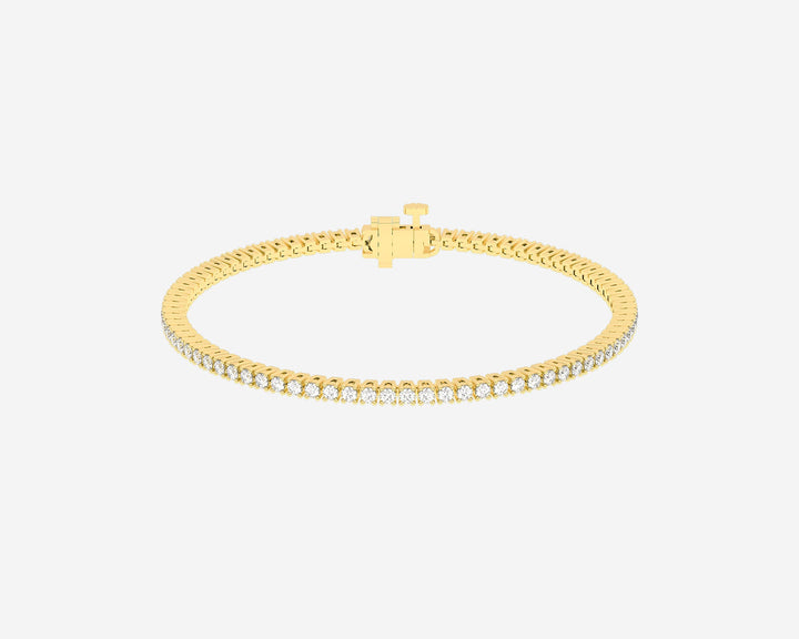 The Classic Tennis Bracelet by Holden is a timeless piece showcasing lab-grown round diamonds set in 14k yellow, white, or rose gold. Available in 3ct, 6ct, and 8ct versions and lengths 6.5', 7', and 7.5', this bracelet offers effortless elegance alone or layered for a luxurious stack. Crafted sustainably with ethical diamonds and expert craftsmanship.