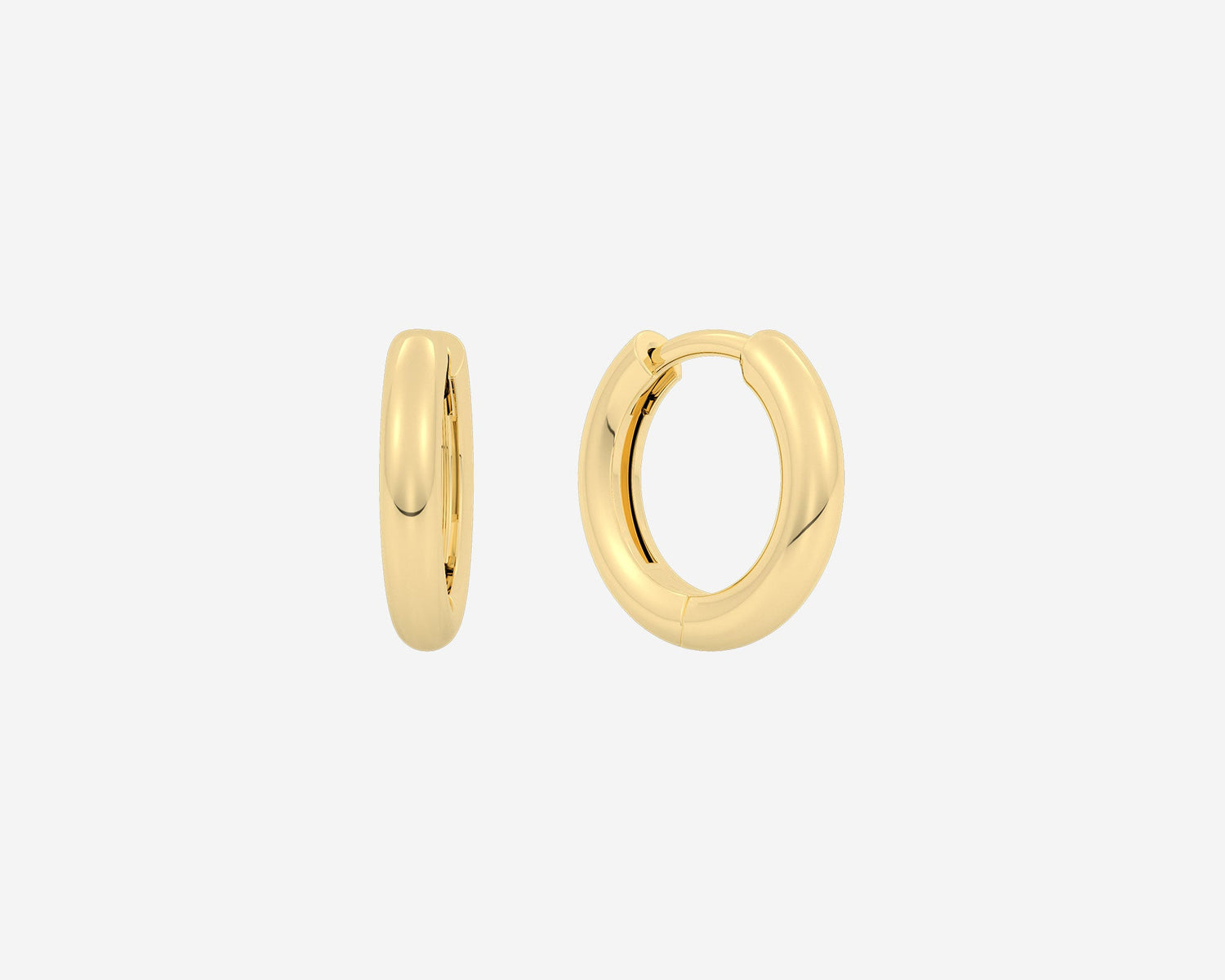 These Domed Huggies by Holden are sleek, rounded huggie earrings with a 2mm width, embodying simple sophistication. Featuring a secure clicker closure, they are comfortable for everyday wear. Available in 14k yellow, rose, and white gold, they reflect the brand’s dedication to ethical luxury and craftsmanship from New York City.