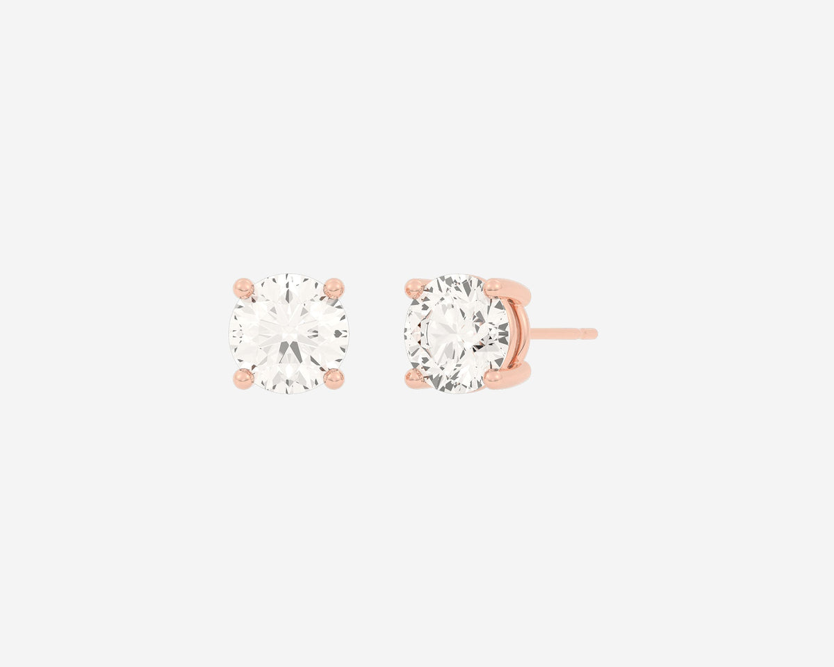 The Round Diamond Studs by Holden are timeless four-prong earrings featuring lab-grown round diamonds in 0.25 ct per earring (0.5 ct total), 1 ct, and 2 ct sizes. Crafted from 14k yellow, rose, or white gold, they are perfect for everyday sparkle with sustainable craftsmanship.