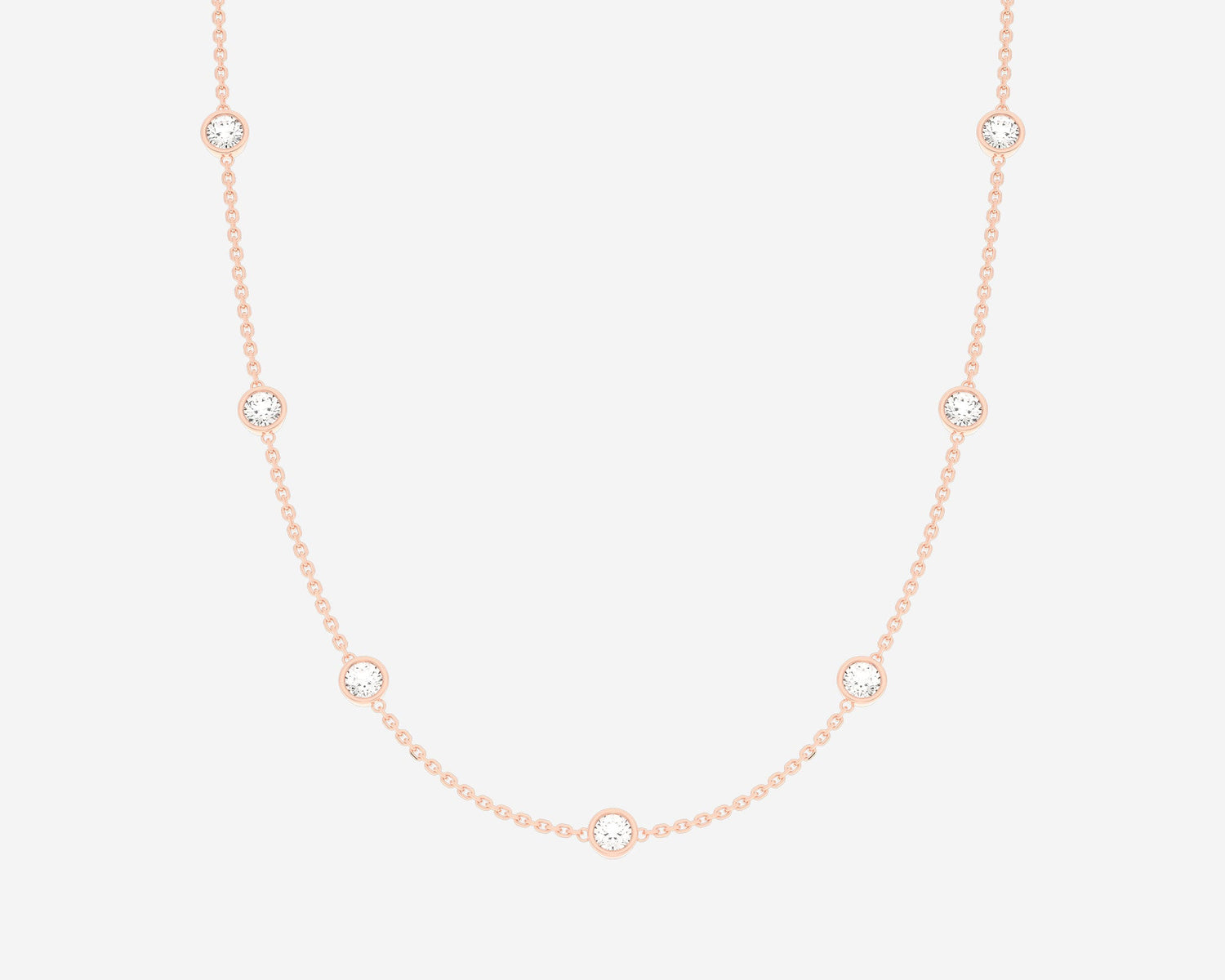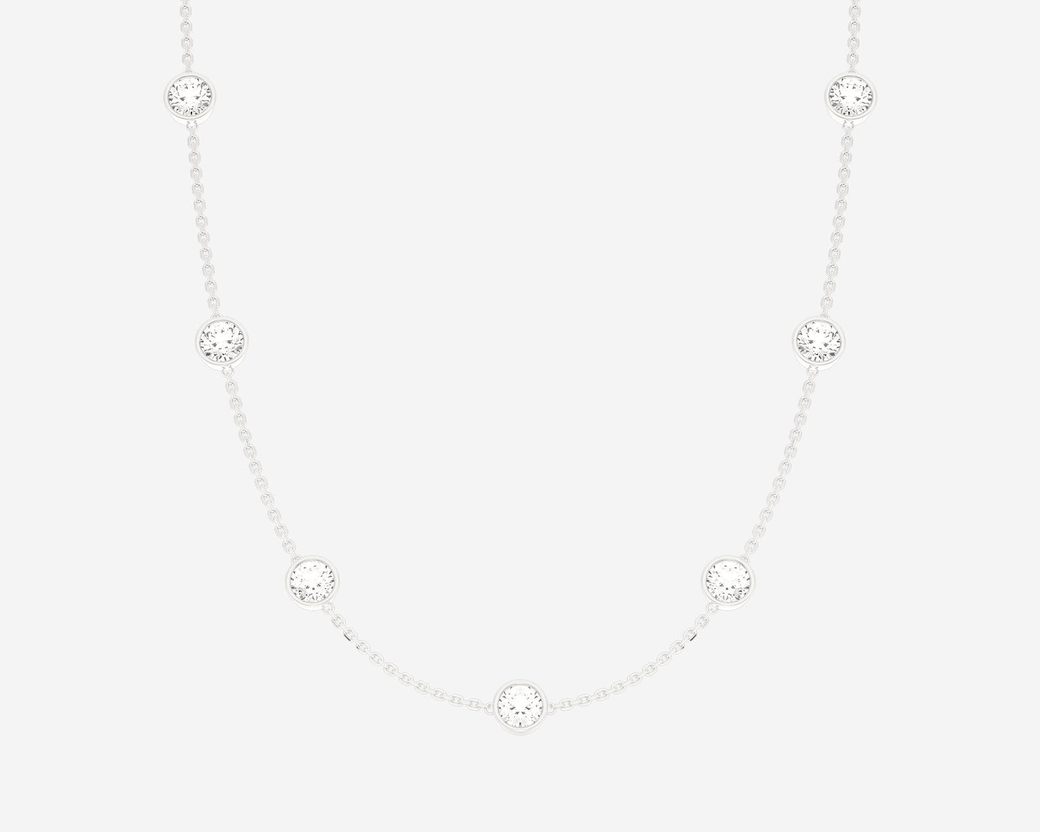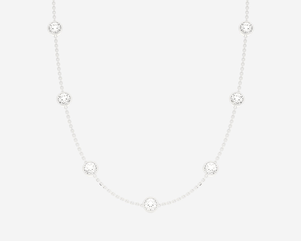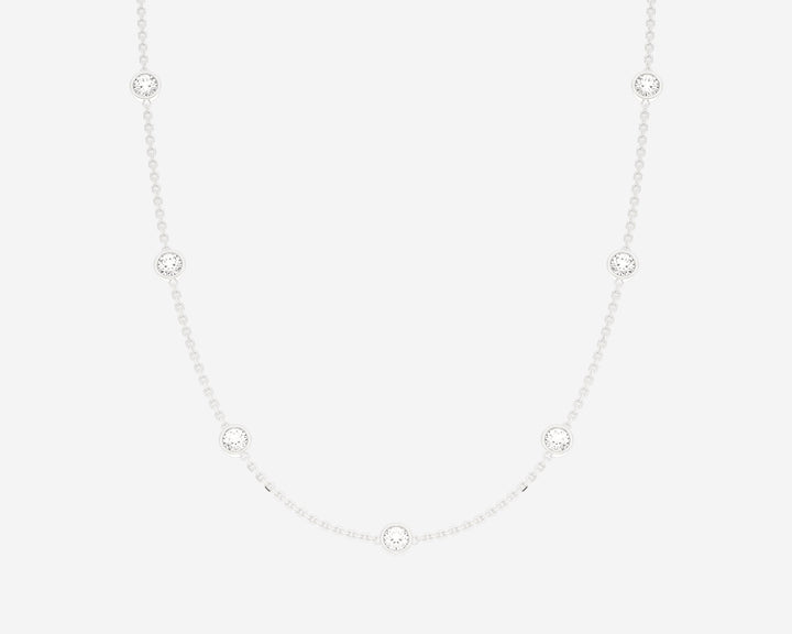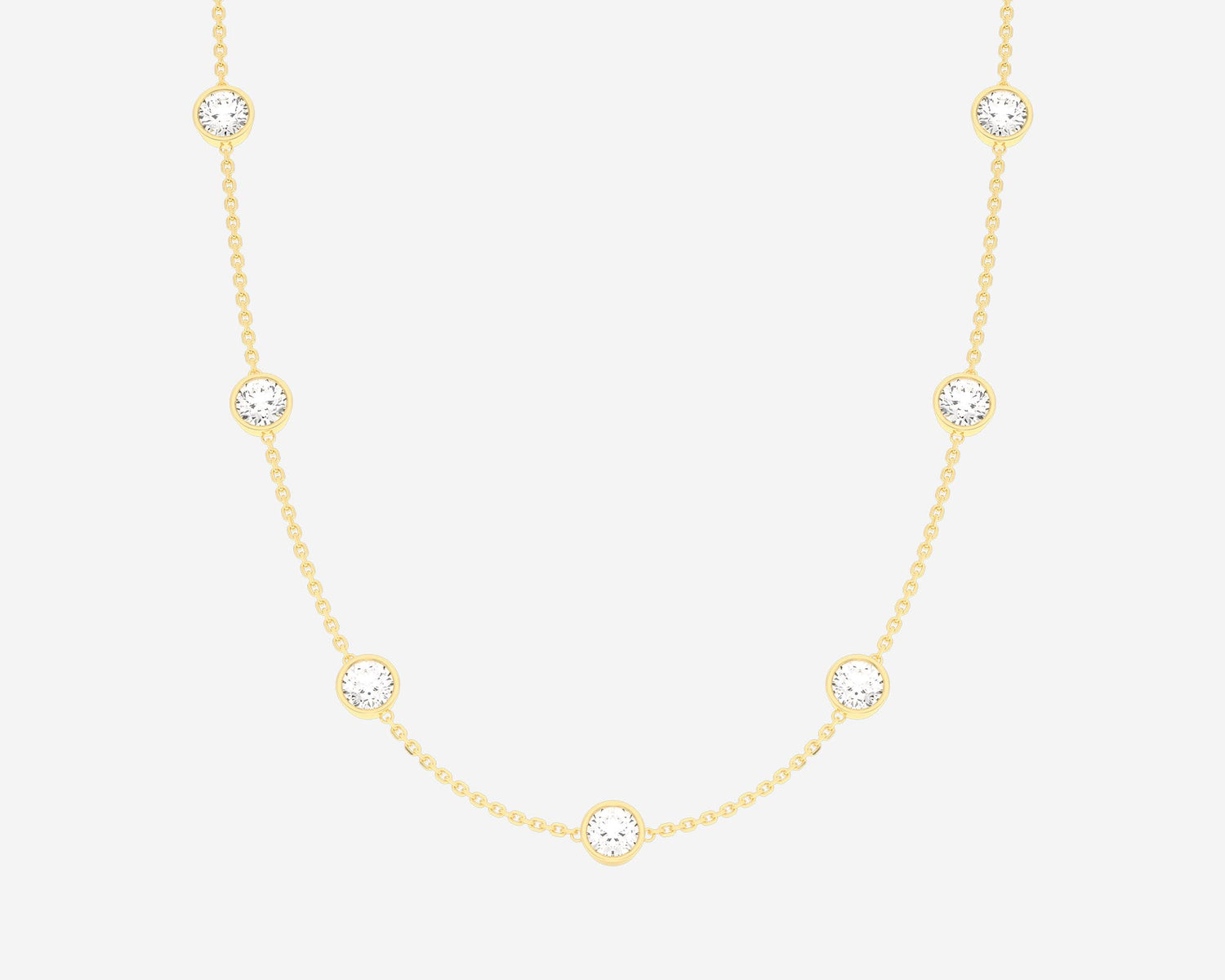 This Classic Station Necklace by Holden elevates any look with bezel-set lab-grown round diamonds spaced evenly along the chain. Available in 14k yellow, rose, or white gold, this versatile necklace is perfect for layering or wearing solo and is handcrafted to order with meticulous care and sustainable materials.