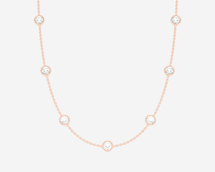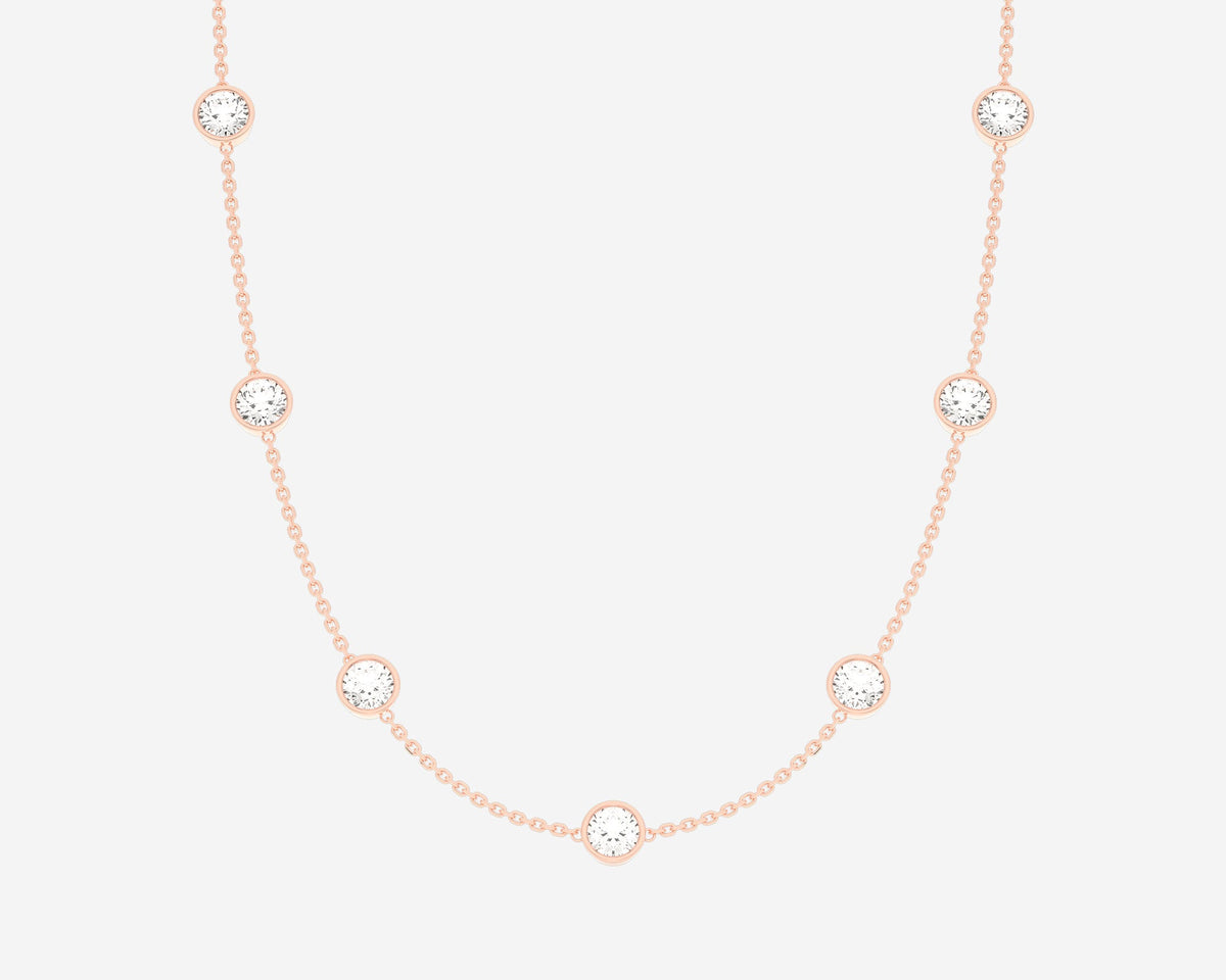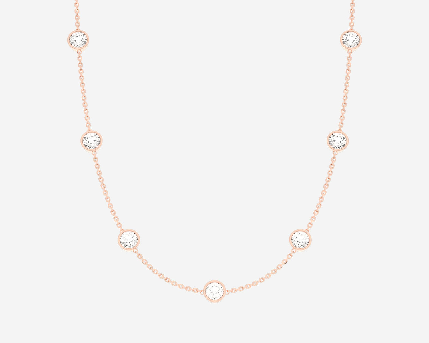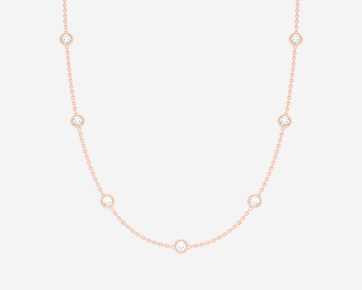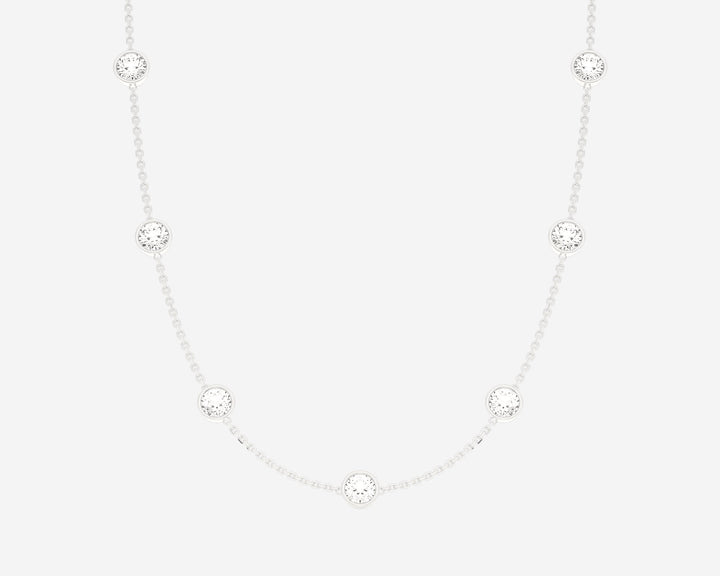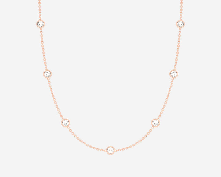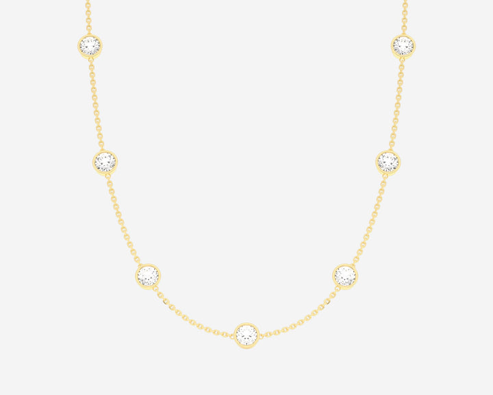 This Classic Station Necklace by Holden elevates any look with bezel-set lab-grown round diamonds spaced evenly along the chain. Available in 14k yellow, rose, or white gold, this versatile necklace is perfect for layering or wearing solo and is handcrafted to order with meticulous care and sustainable materials.