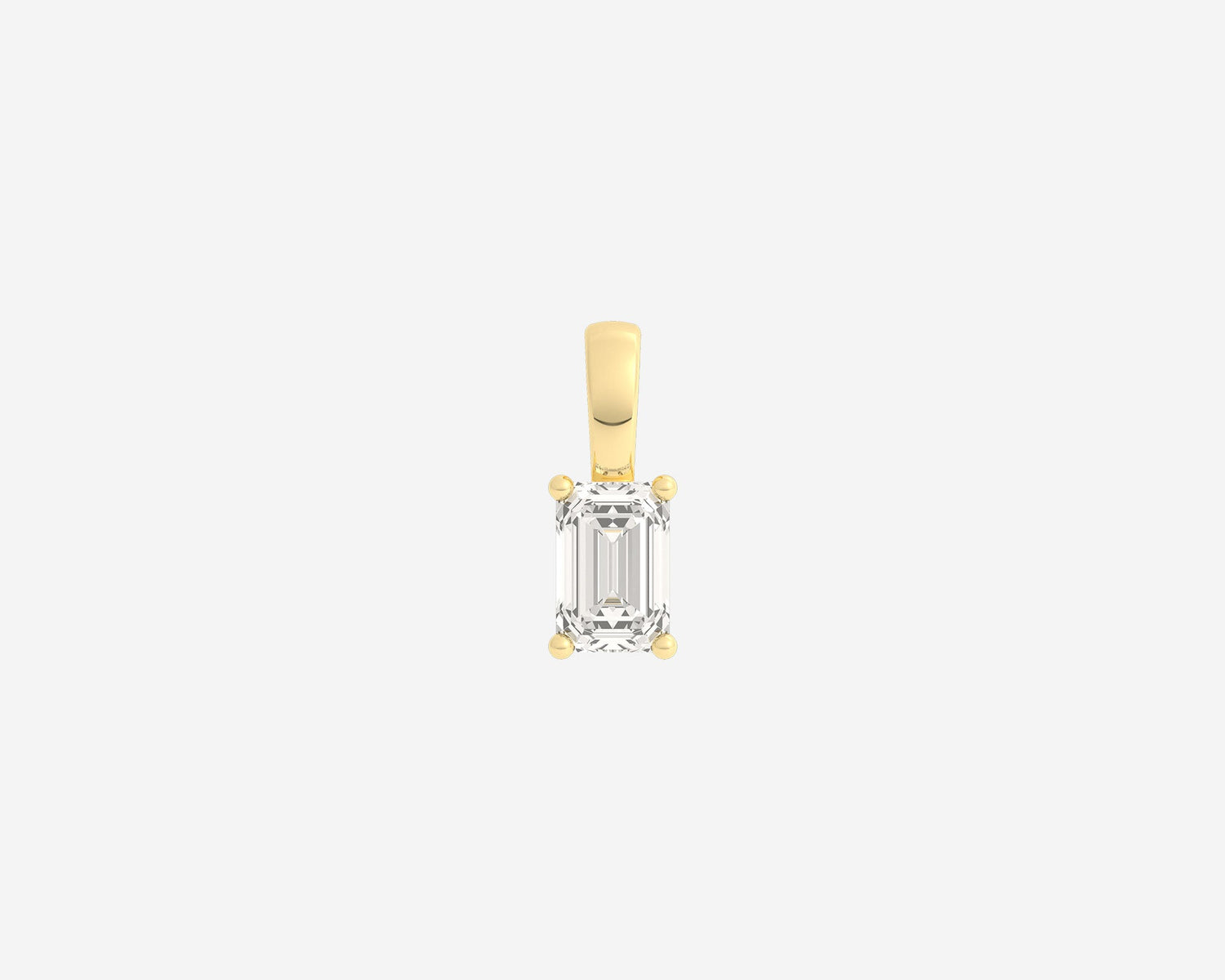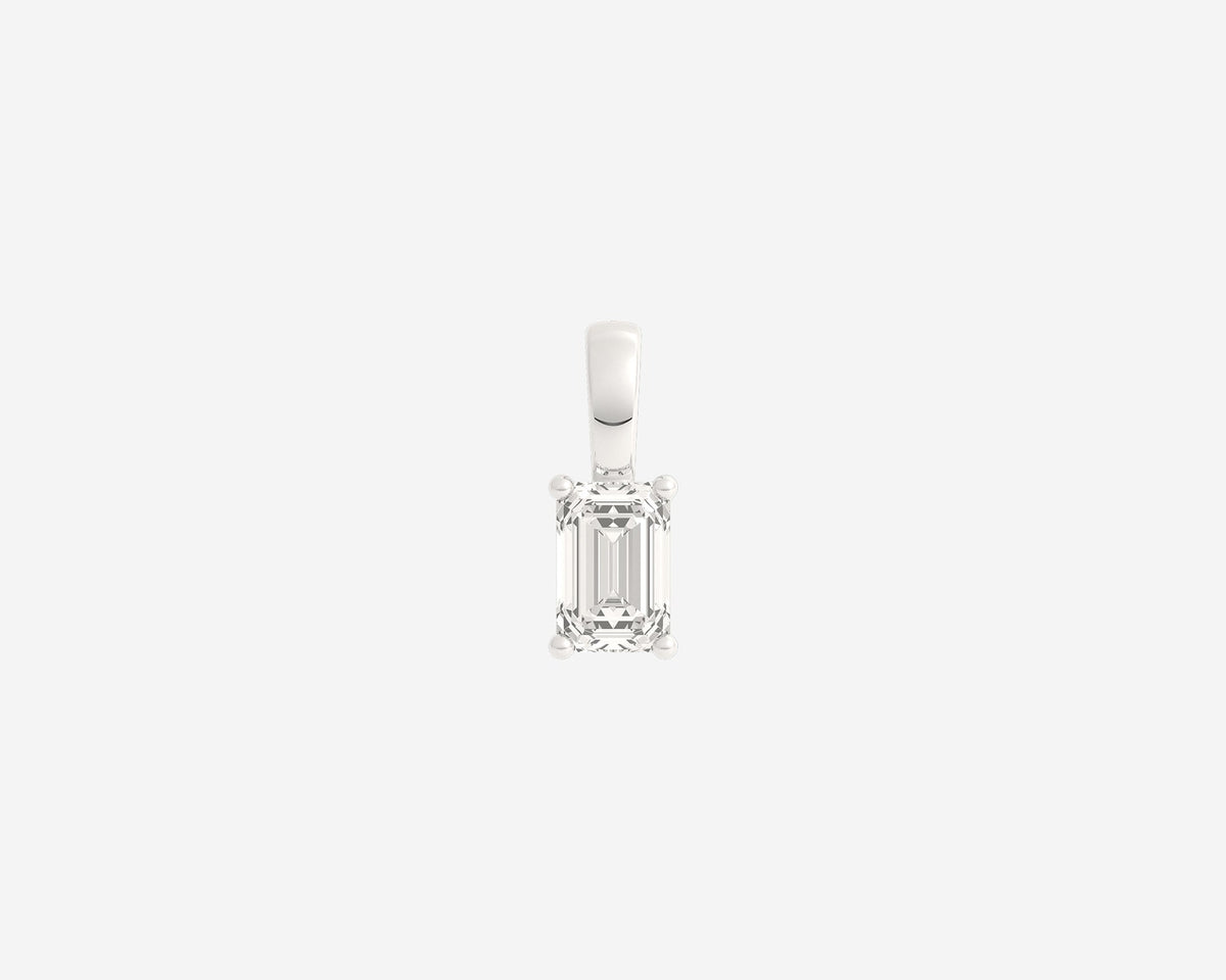This Emerald Diamond Pendant by Holden is an elegant necklace pendant showcasing an emerald-cut lab-grown diamond set in a refined 14k solid gold prong setting. Available in white, yellow, or rose gold, it can be personalized by carat size and paired with a chain of your choice (sold separately), embodying timeless sophistication with ethical integrity.