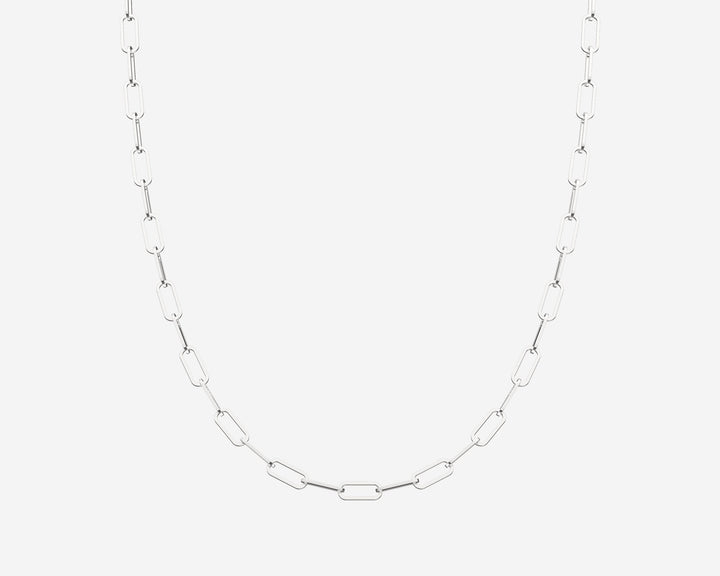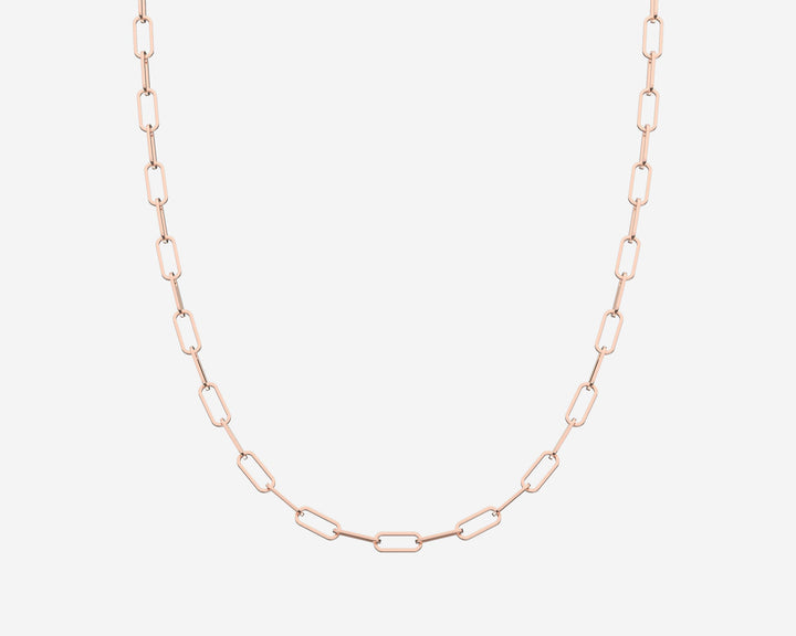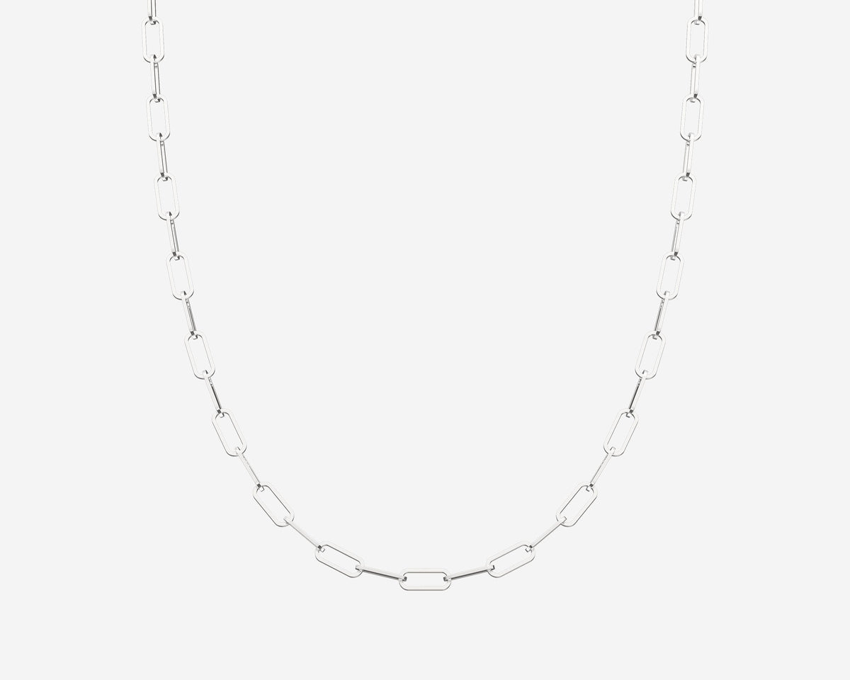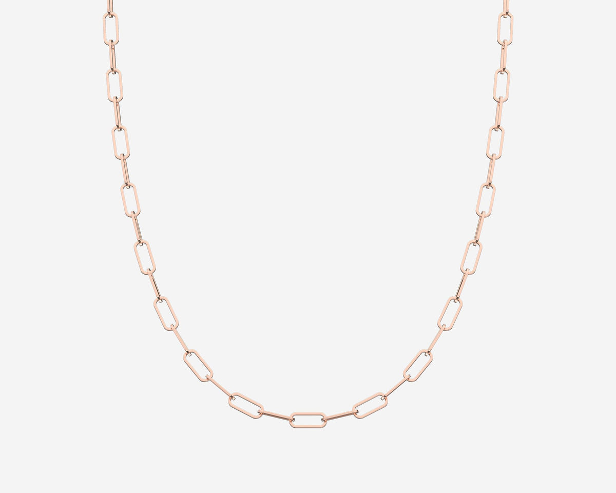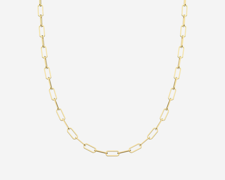 This Paperclip Necklace by Holden complements the bracelet with a 16-inch chain in solid 14k yellow and white gold. Measuring 2.5mm wide, its modern paperclip links deliver sleek, versatile elegance. Crafted in New York City, it combines contemporary style with sustainable luxury.