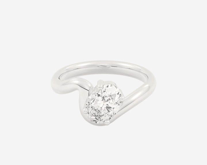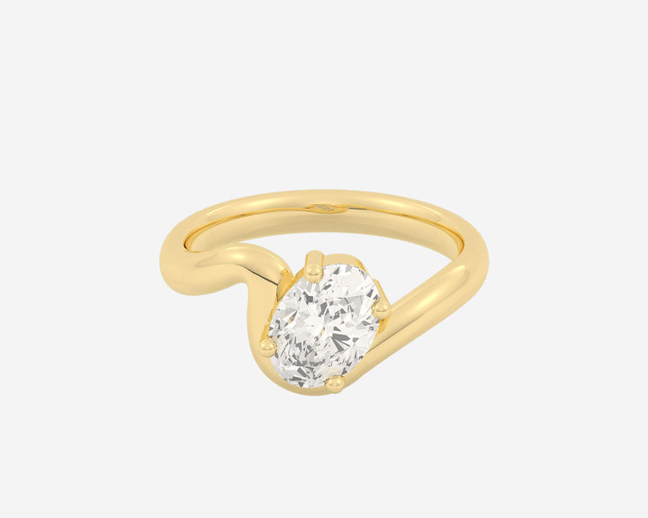 This Arc Solitaire — Oval ring by Holden features a non-traditional waved comfort-fit band holding a lab-grown oval-cut diamond with rounded prongs. Customizable in 14k or 18k yellow, white, or rose gold, or platinum, this ring is a fresh and elegant choice for a modern engagement ring made to order.