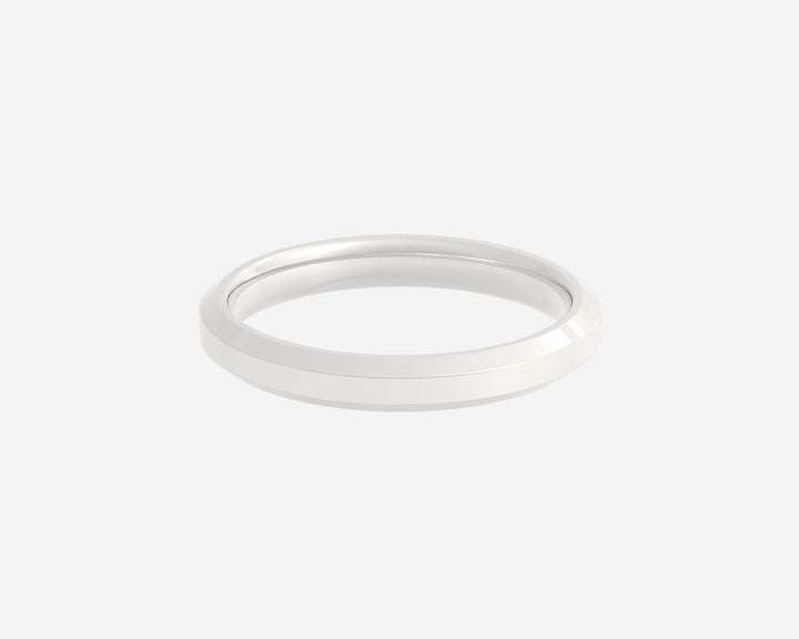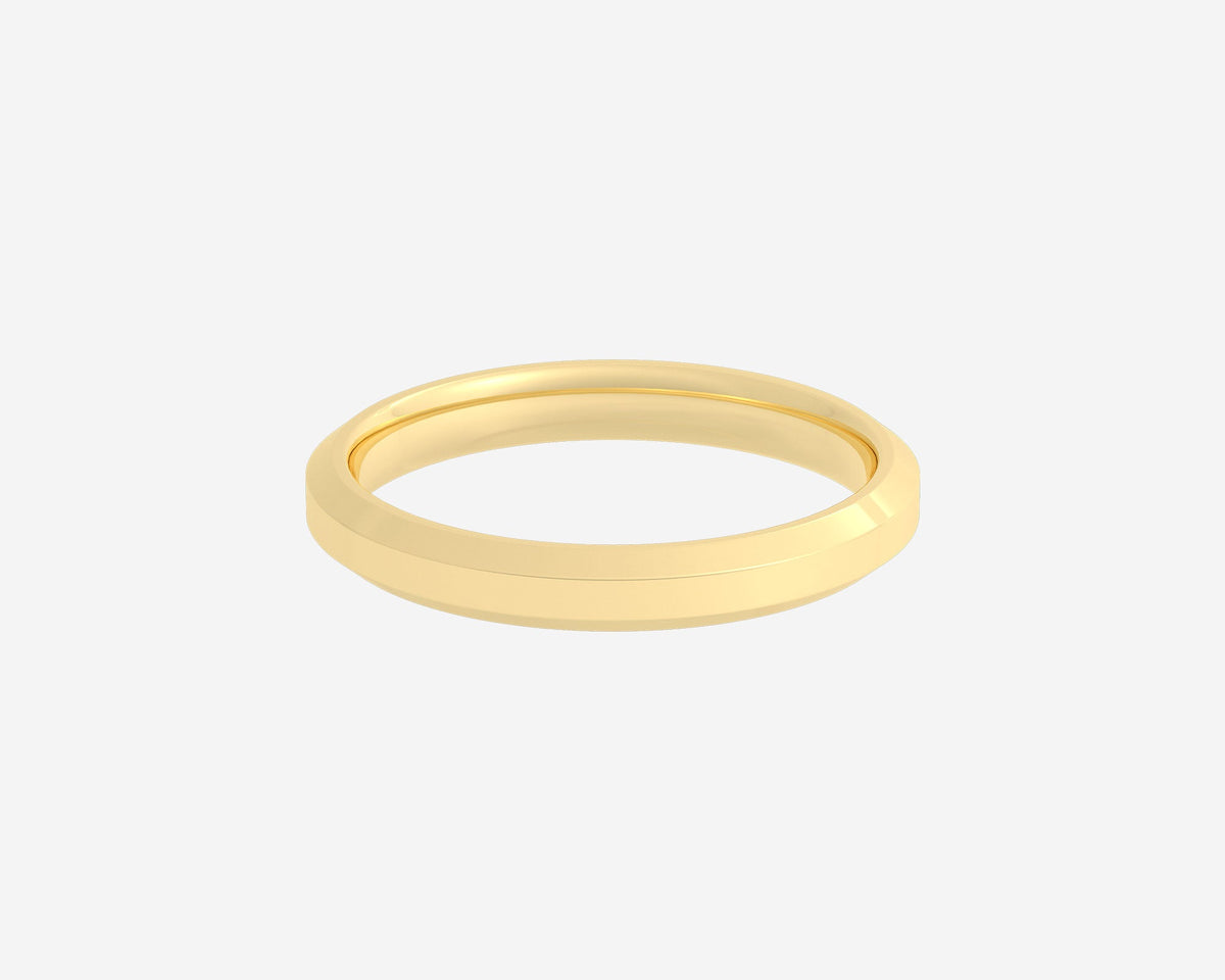 This Beveled ring by Holden features a refined 3mm width with delicately angled edges that catch light beautifully, adding dimension to a classic band shape. The unisex comfort-fit design ensures a seamless and comfortable wear, perfect for layering or as a standalone statement. This piece celebrates subtle sophistication and resilience, crafted with intention and care. Custom made in New York City using sustainable practices.