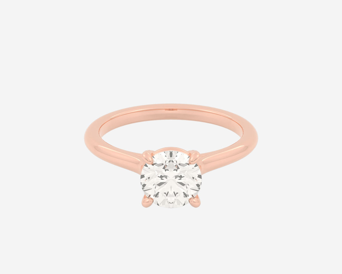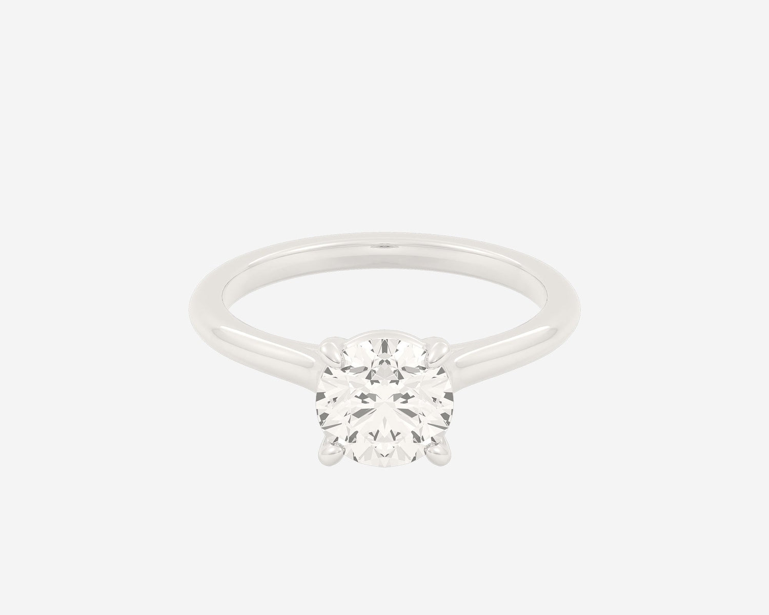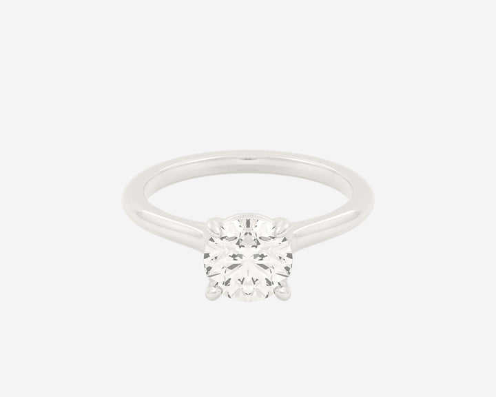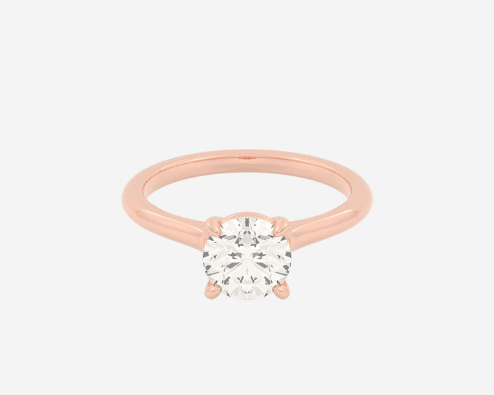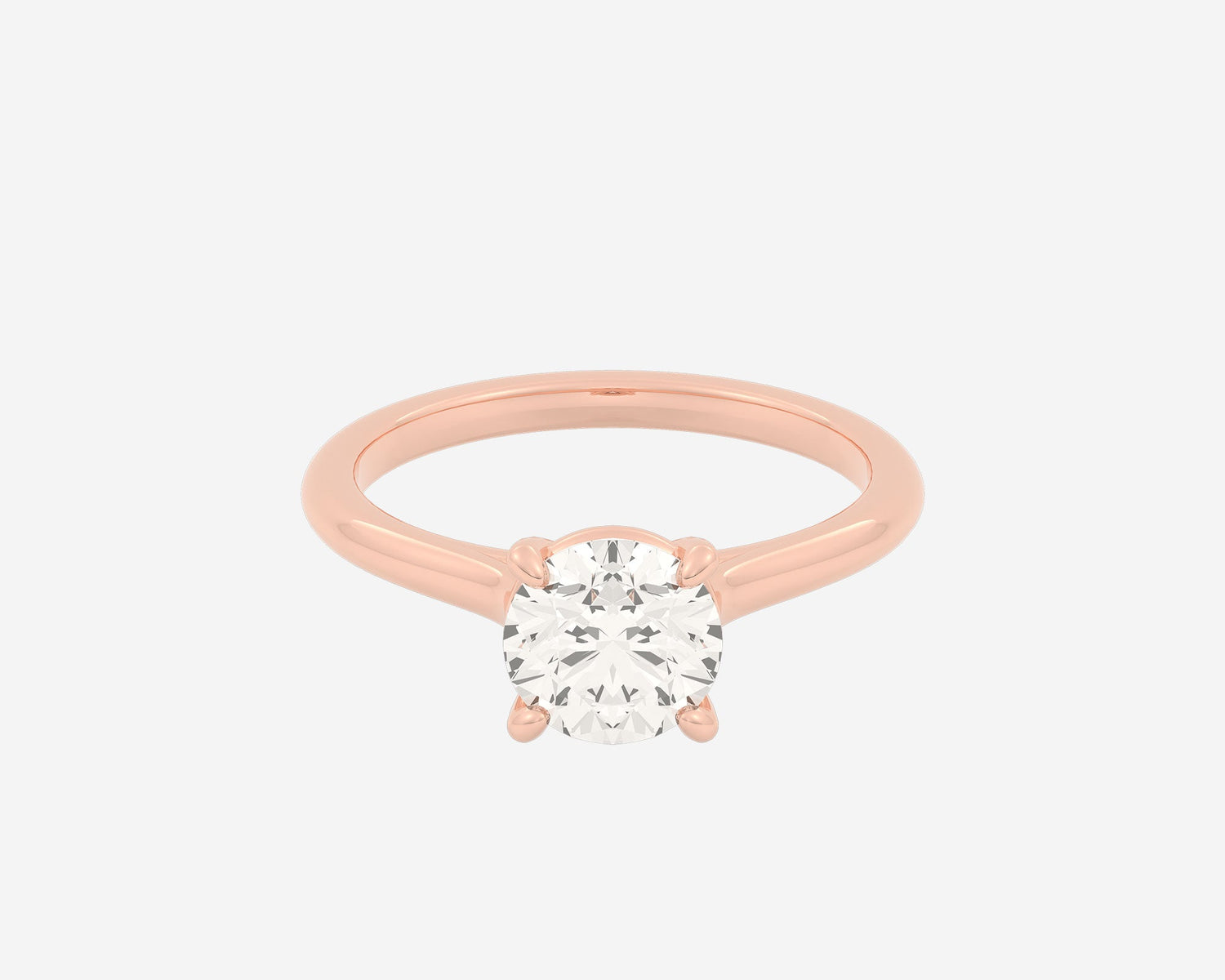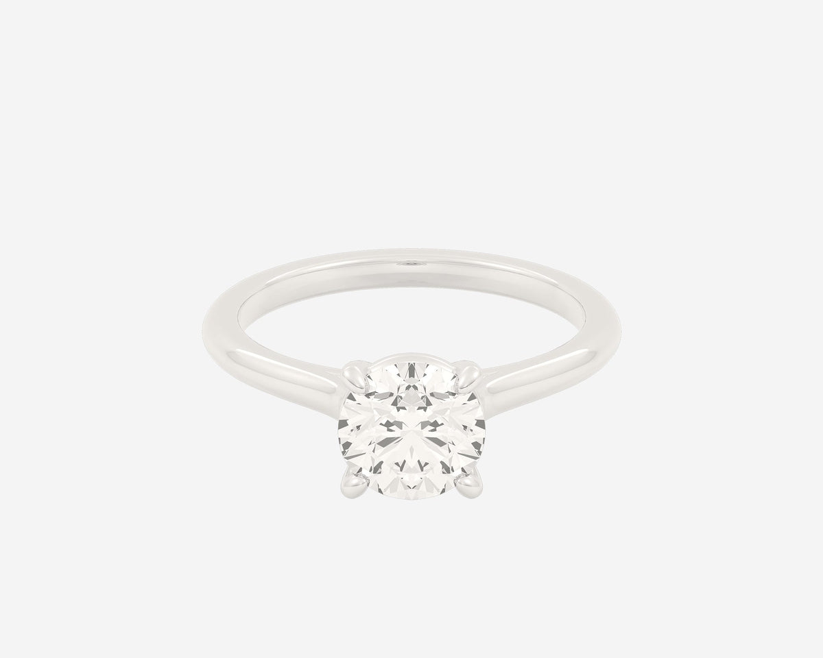 This Cathedral Solitaire — Round ring by Holden is a timeless engagement ring with a lab-grown brilliant round-cut diamond secured in a four-prong setting. The arched band elevates the stone elegantly, offering both beauty and support. Available in multiple metals and handcrafted to order with precision.