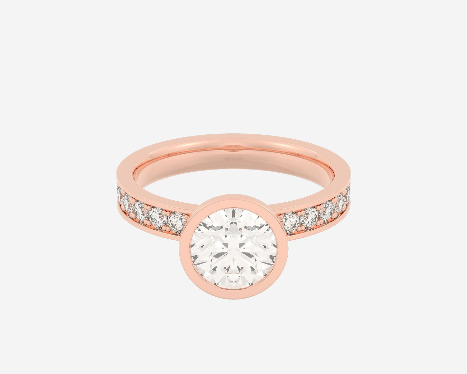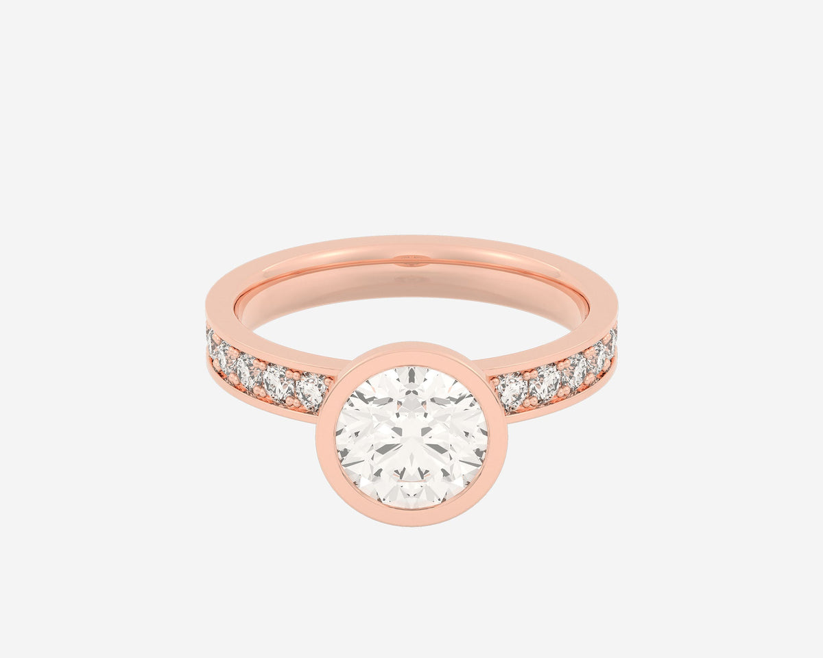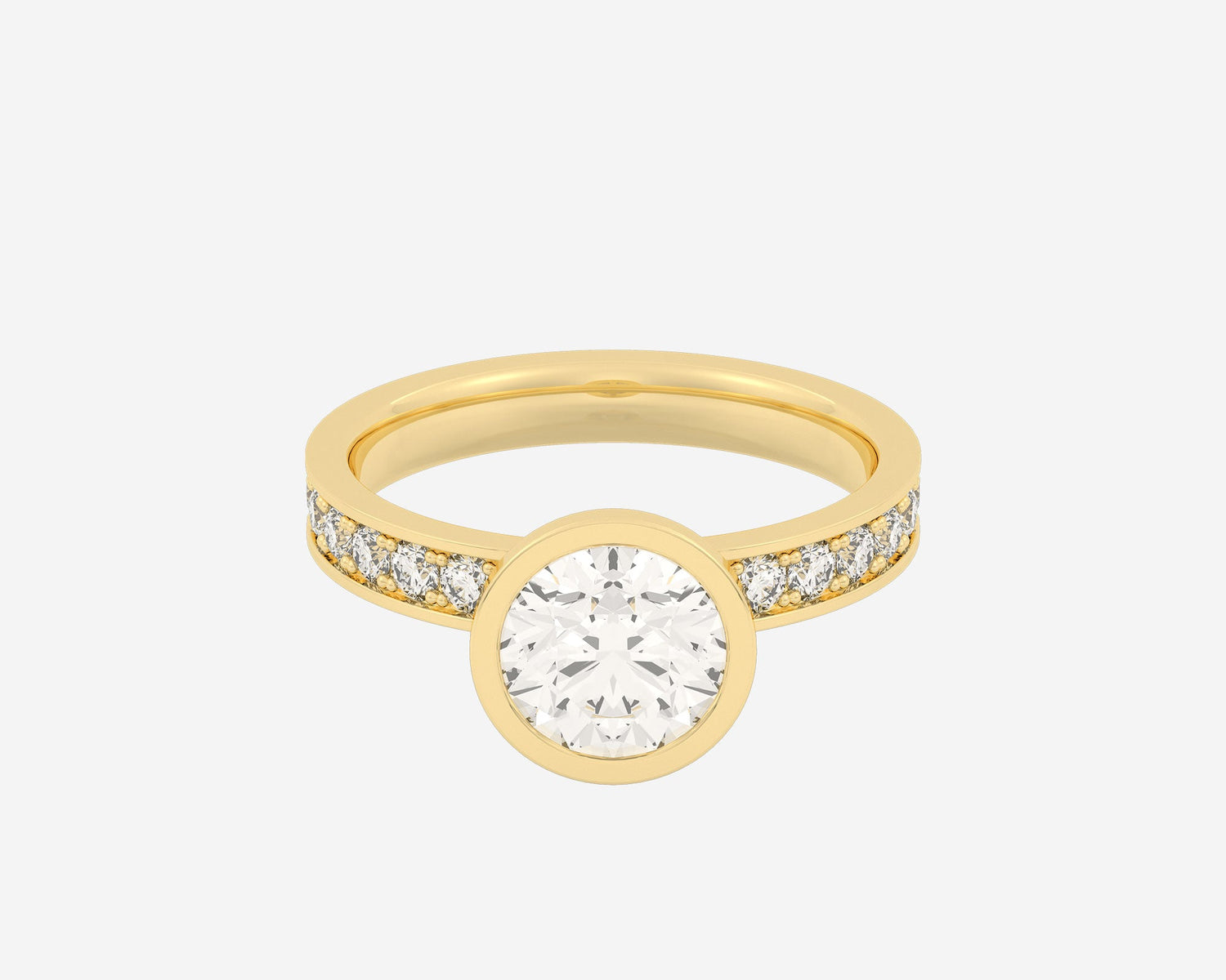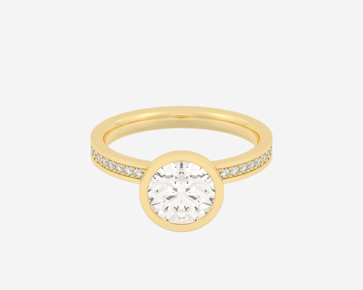 This Channel Eternity Bezel Solitaire Round by Holden showcases a round lab-grown diamond set within a continuous 2mm bezel channel band, creating an elegant and secure design. The ring reflects timeless commitment and modern luxury with sustainable and ethical craftsmanship.