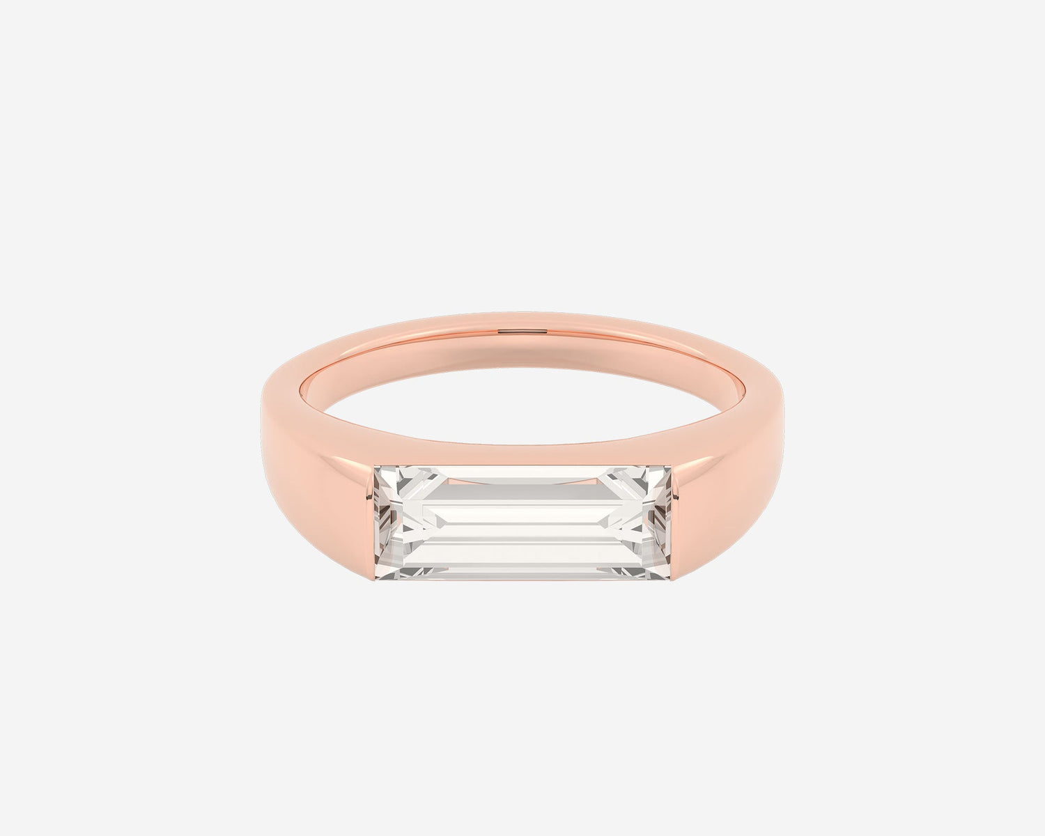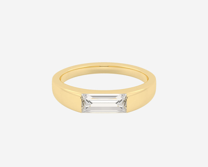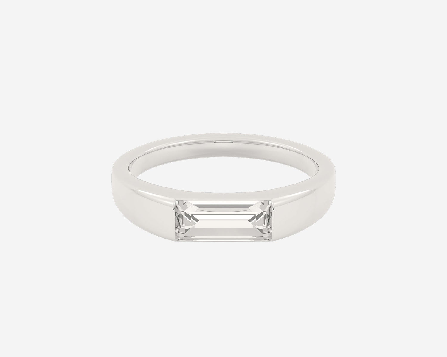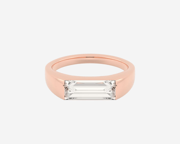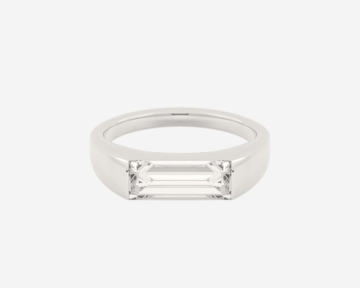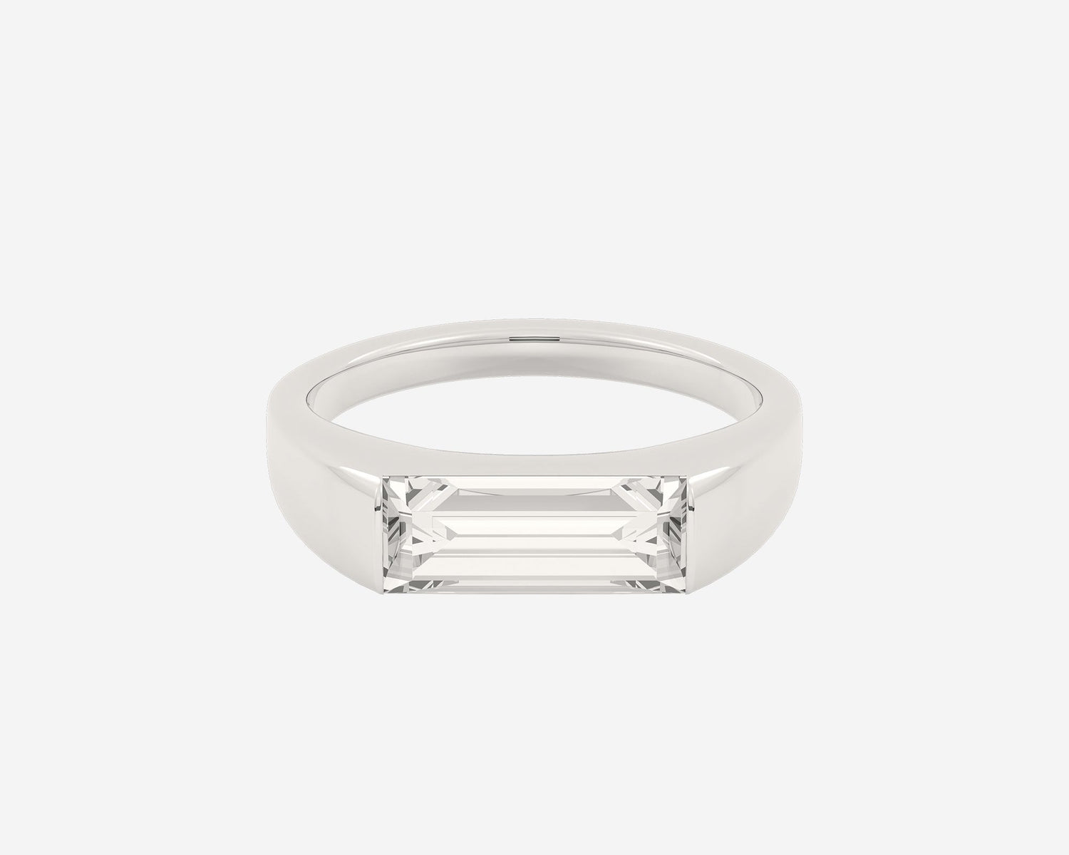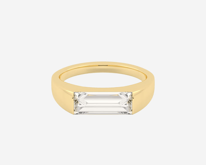 The Corridor Signet by Holden is a bold reinterpretation of the traditional signet ring, featuring a horizontally set 1.0 ct baguette-cut lab-grown diamond on a squared face with smoothed edges. Offered in multiple gold options and widths, this ring makes a striking statement as a wedding band or personal symbol with modern edge.