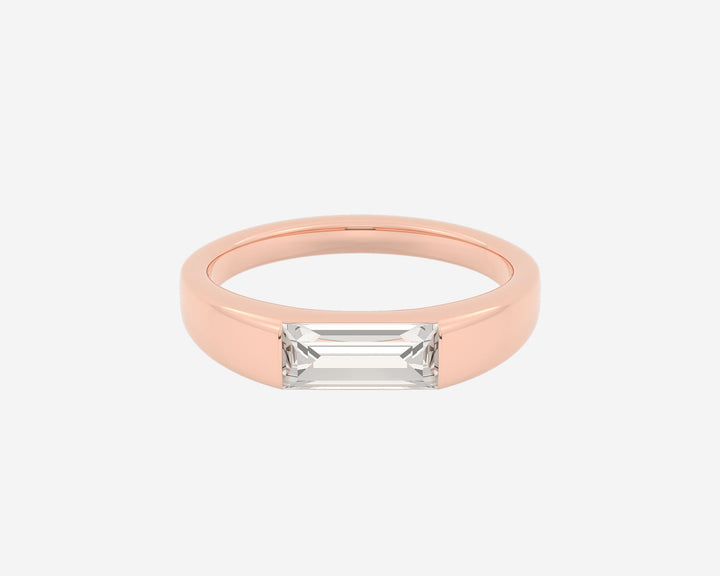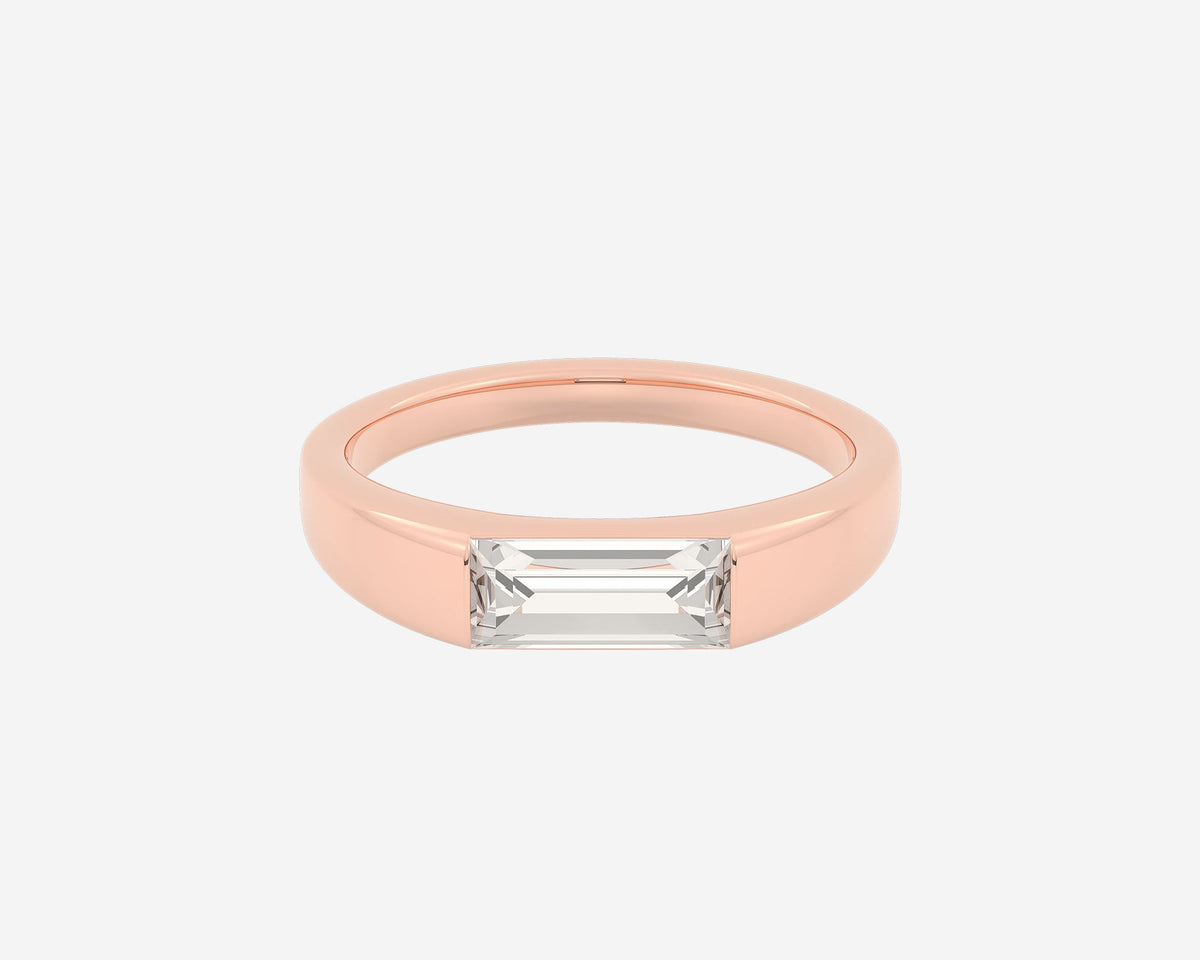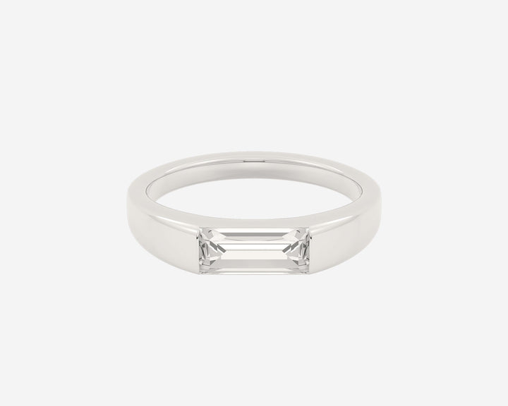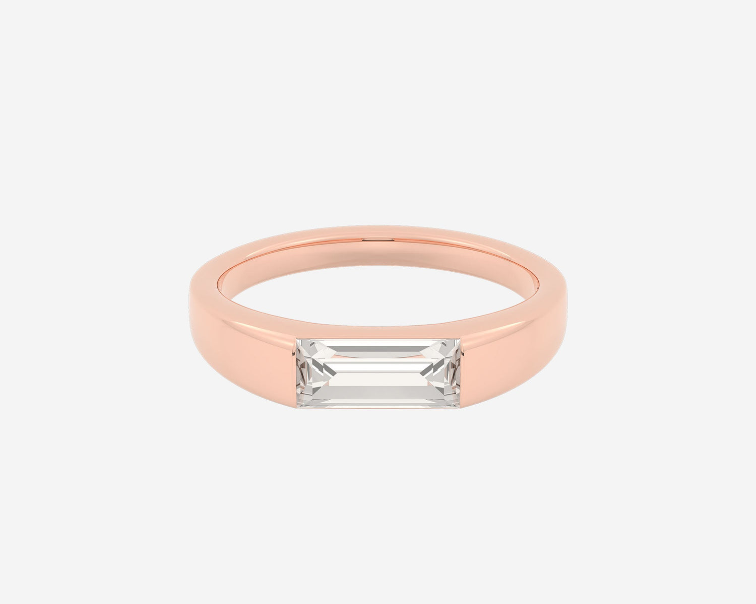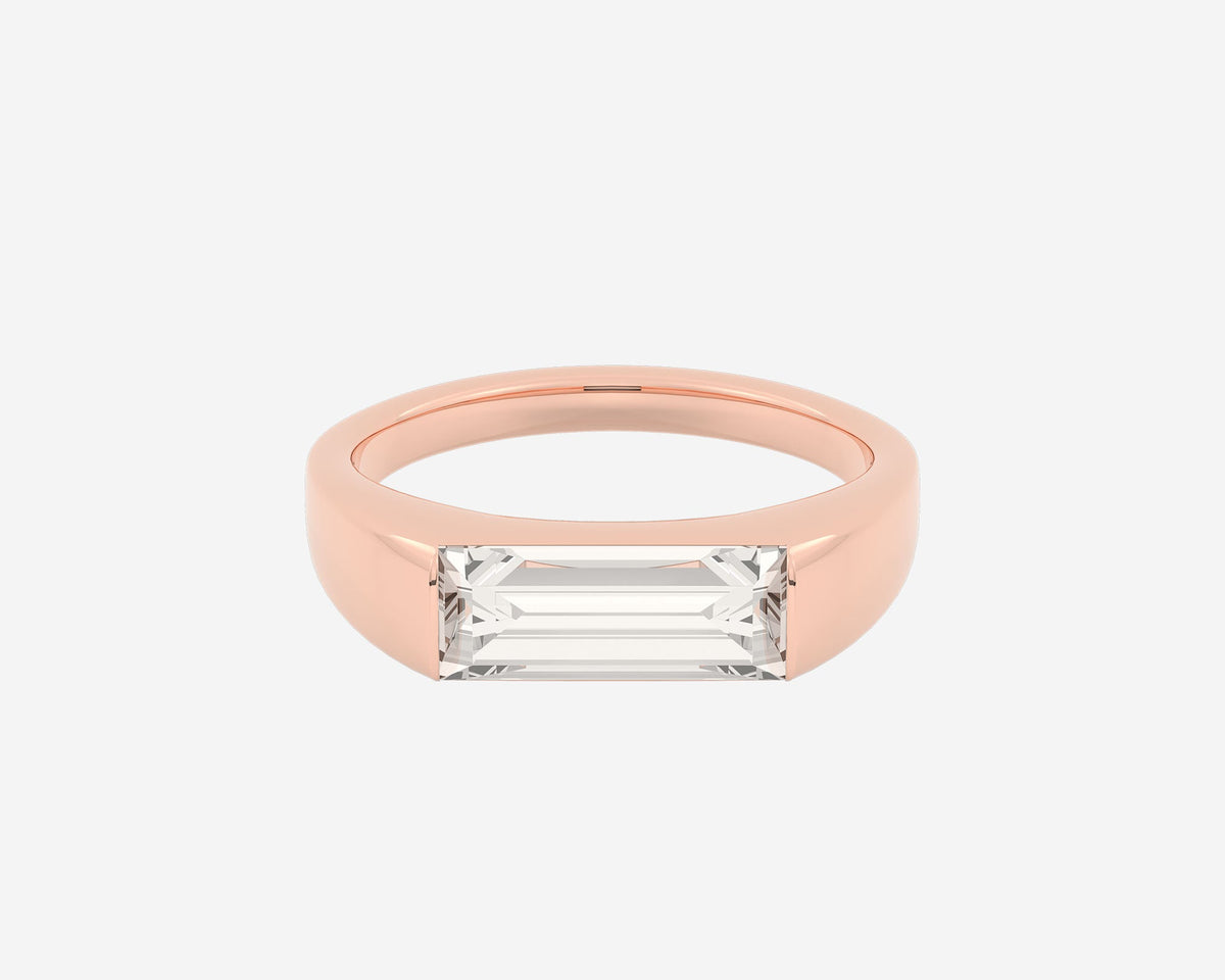 The Corridor Signet by Holden is a bold reinterpretation of the traditional signet ring, featuring a horizontally set 1.0 ct baguette-cut lab-grown diamond on a squared face with smoothed edges. Offered in multiple gold options and widths, this ring makes a striking statement as a wedding band or personal symbol with modern edge.
