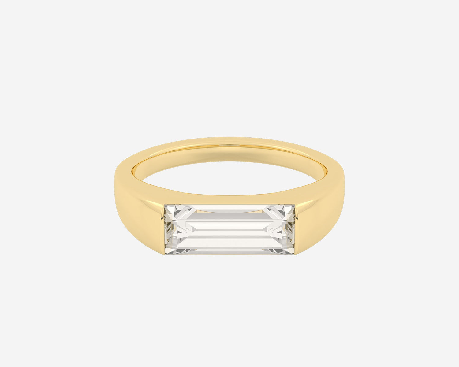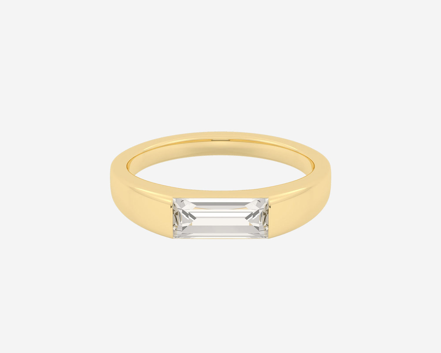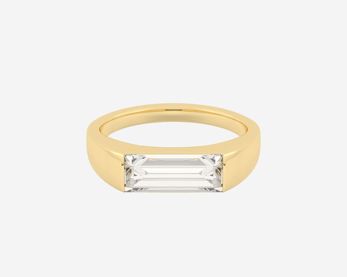 Handcrafted in 14k yellow gold with 1.0 ct lab-grown baguette-cut diamond.