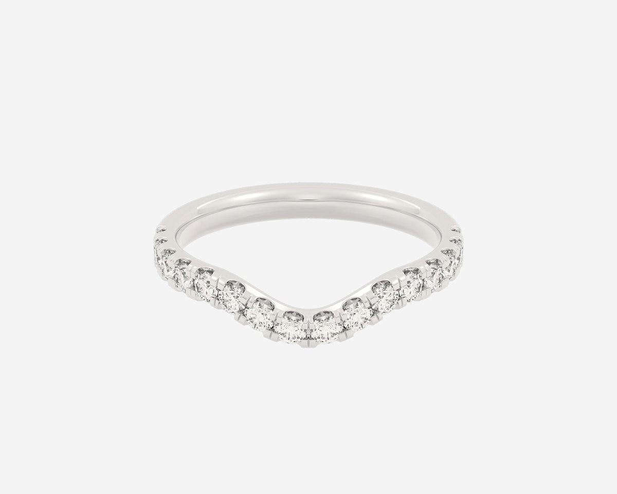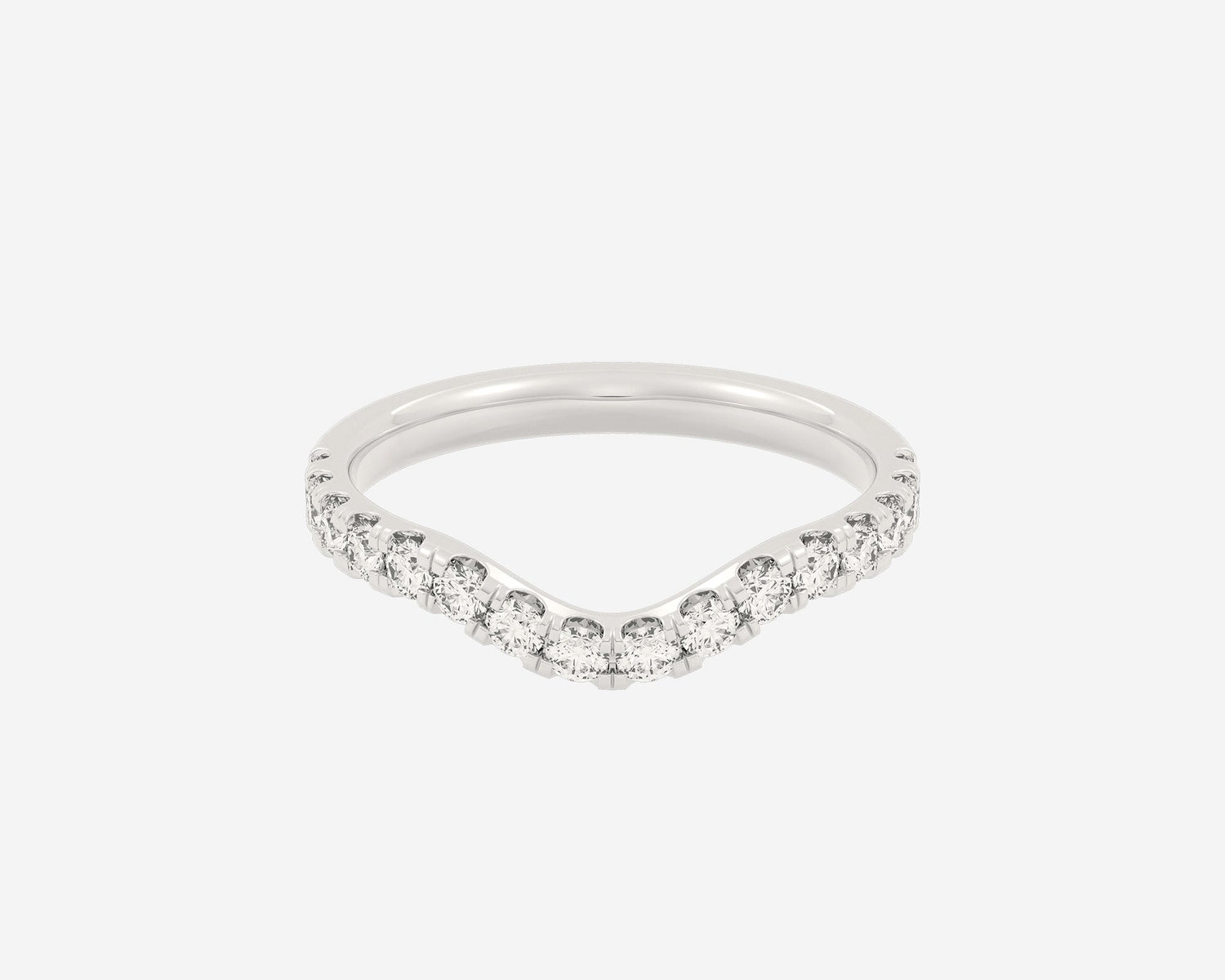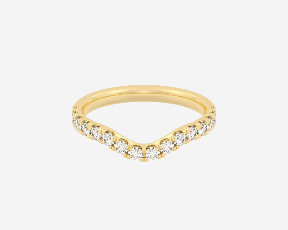 These Curved Half Eternity by Holden offer a graceful curve set halfway around the band with ethical, lab-grown diamonds, designed to complement solitaire rings ranging from 1 to 2 carats. The seamless curve symbolizes infinity and unity, crafted to enhance the natural beauty of any engagement ring while providing understated sparkle. Perfect for stacking or as a stunning standalone band.